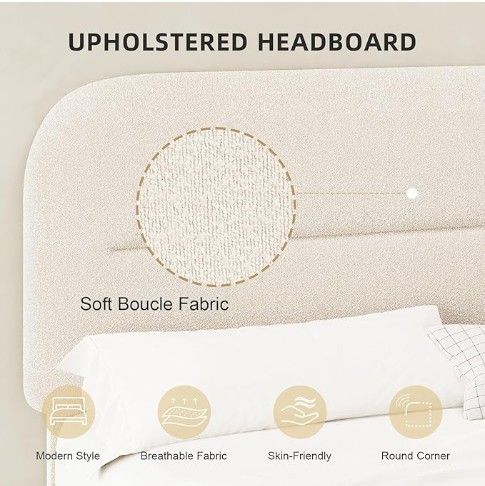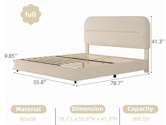 VenmoNew - Hombck Full Size Boucle Bed Frame, Upholstered Bed Frame w/ Headboard, No Box Spring Required, Cream. Still in the Box!