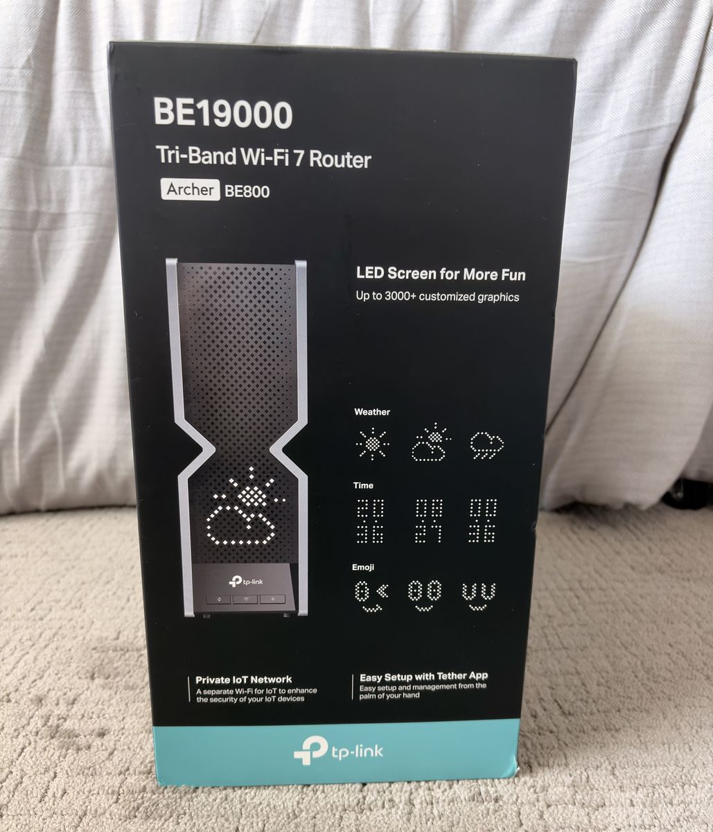 ZelleSelling a TP-Link Archer BE800 WiFi 7 router in excellent condition. This is a high-end tri-band router that delivers extremely fast speeds, strong coverage, and low latency, perfect for gaming, streaming, and smart home setups.