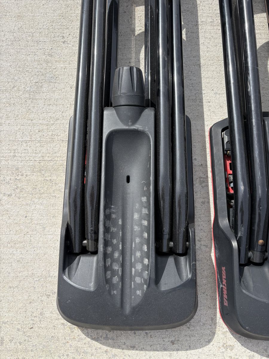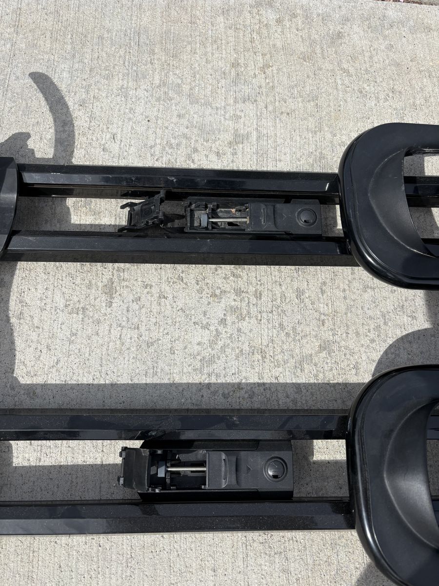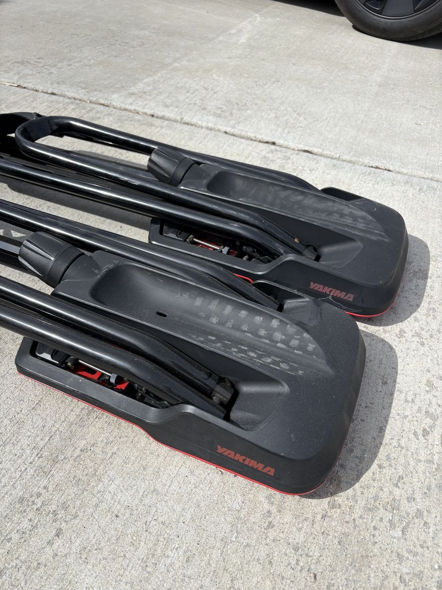 Bought these new last year and only used them a few times. I’m not a mountain biking anymore so they need a new home! There is no damage and everything works perfectly with them! I used these on my Tesla Model 3 with the Tesla roof rack and they were great! But they work on a ton of different vehicles!
