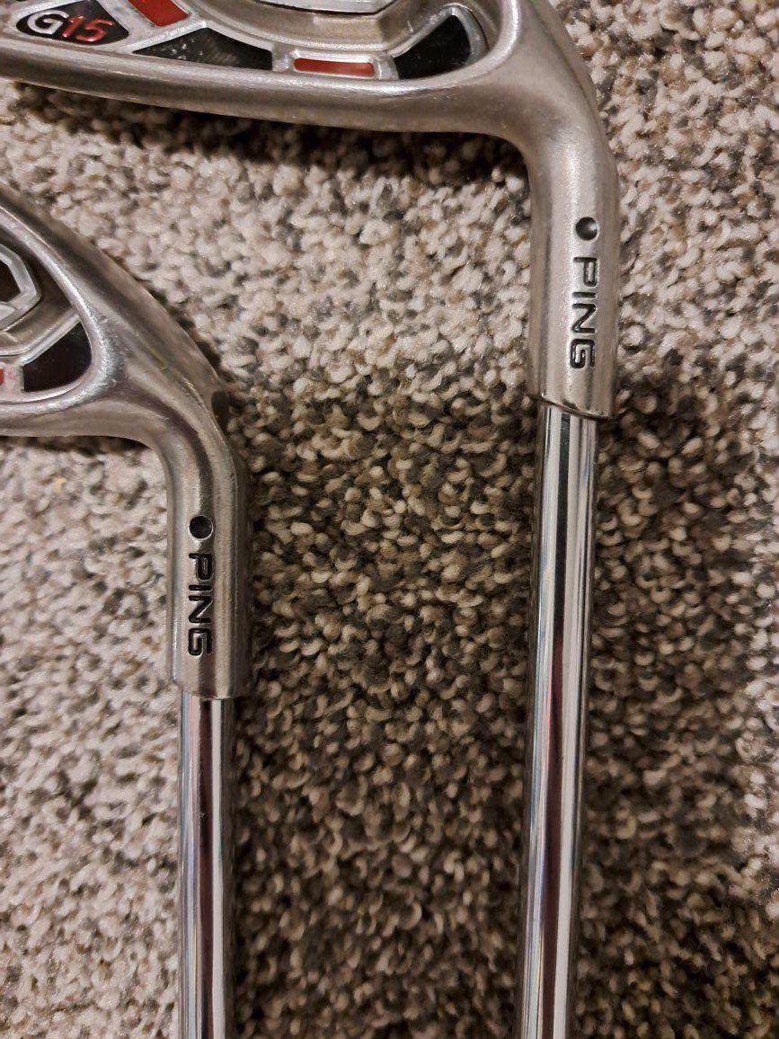 Ping G15 Irons 5-UW. Stiff flex steel shafts. Black dot. Standard length and lie.