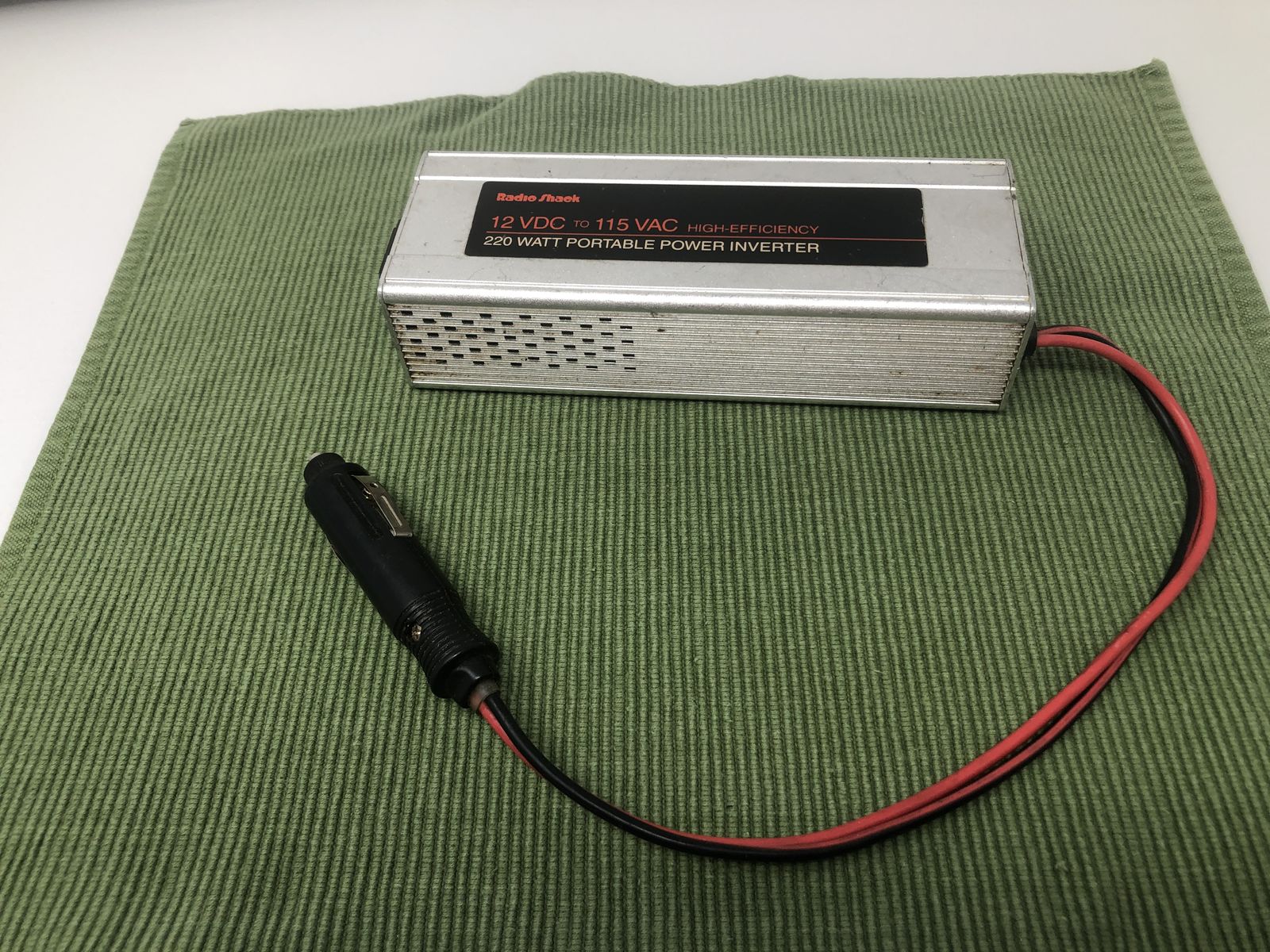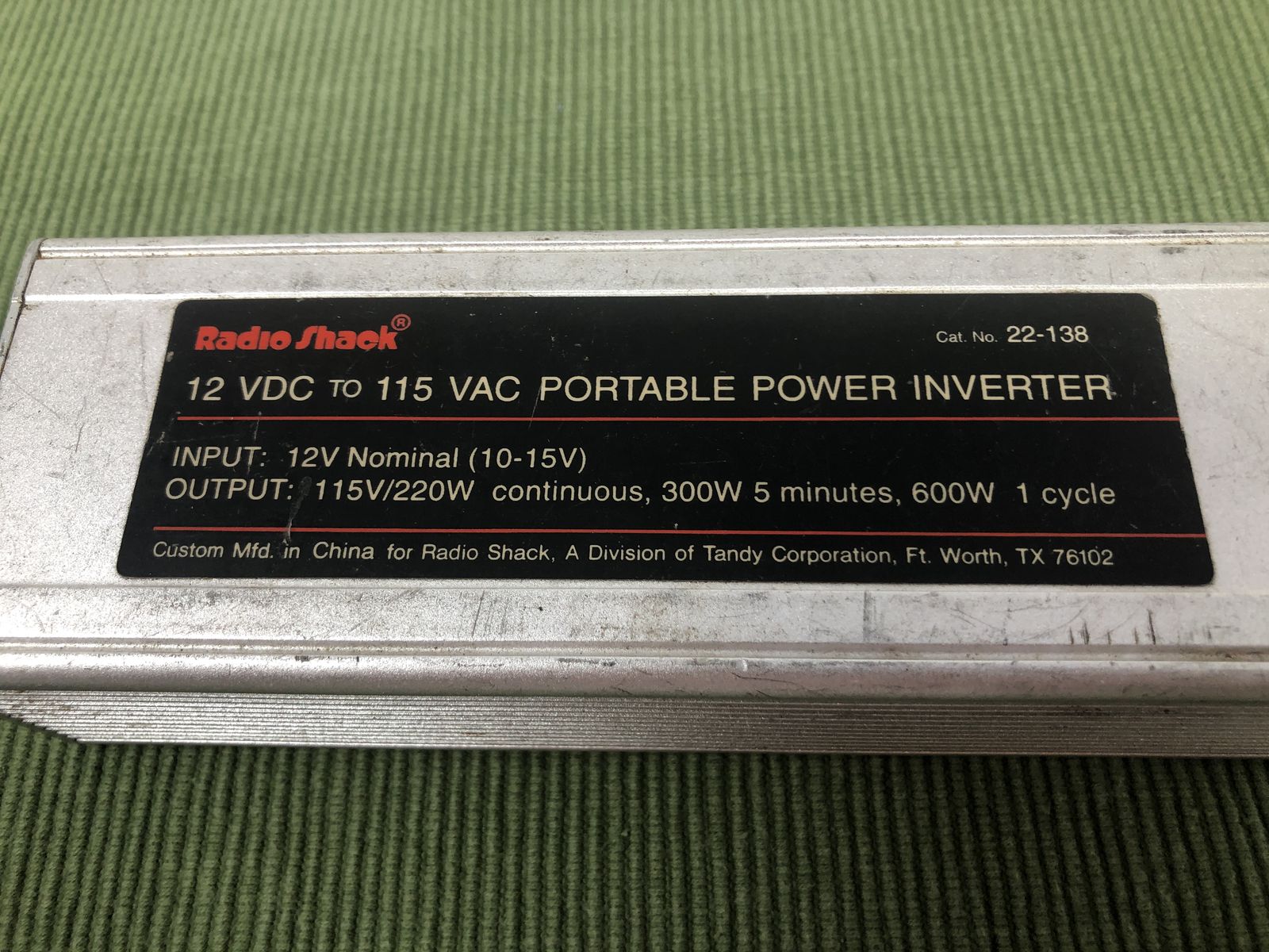 VenmoFor sale is a heavy-duty, vintage RadioShack Portable Power Inverter (Cat. No. 22-138). This unit is built with a durable aluminum heat-sink chassis, much sturdier than modern plastic alternatives. Perfect for road trips, camping, or emergency backup power in your vehicle.