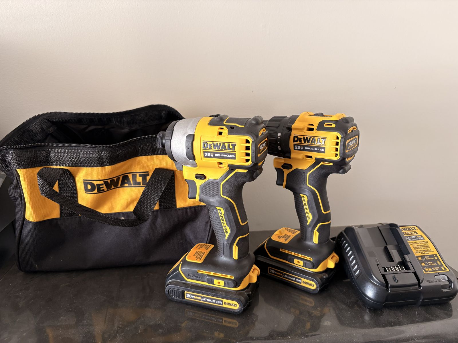 Comes with 2 batteries a charger and the bag got These and used them once to put a dresser together, never use them again don’t need them anymore $150 obo text with any questions