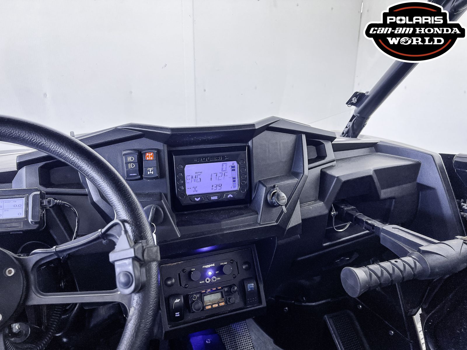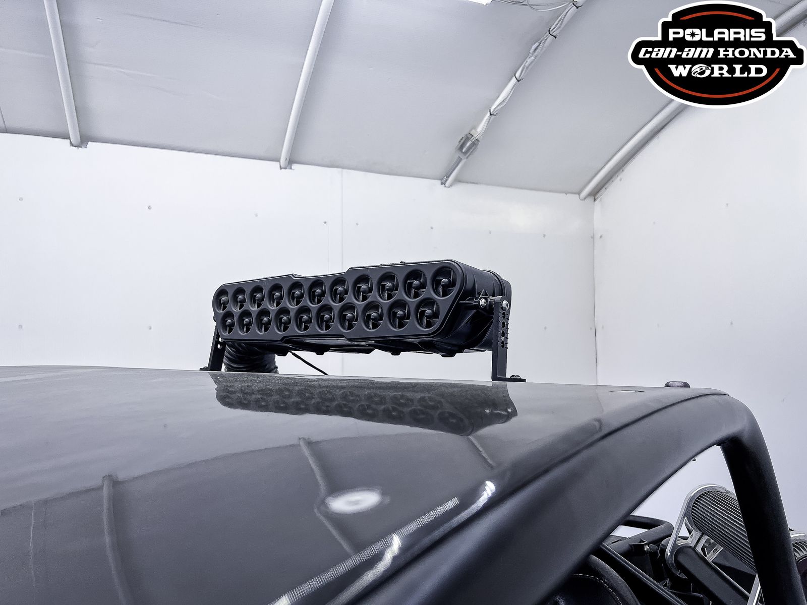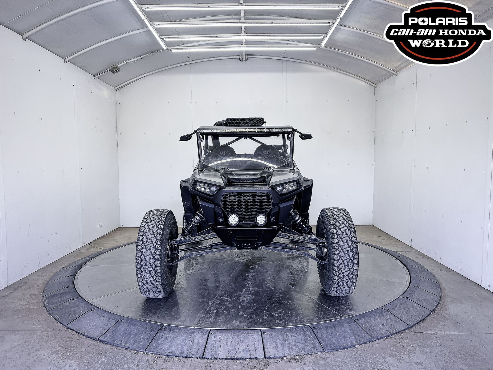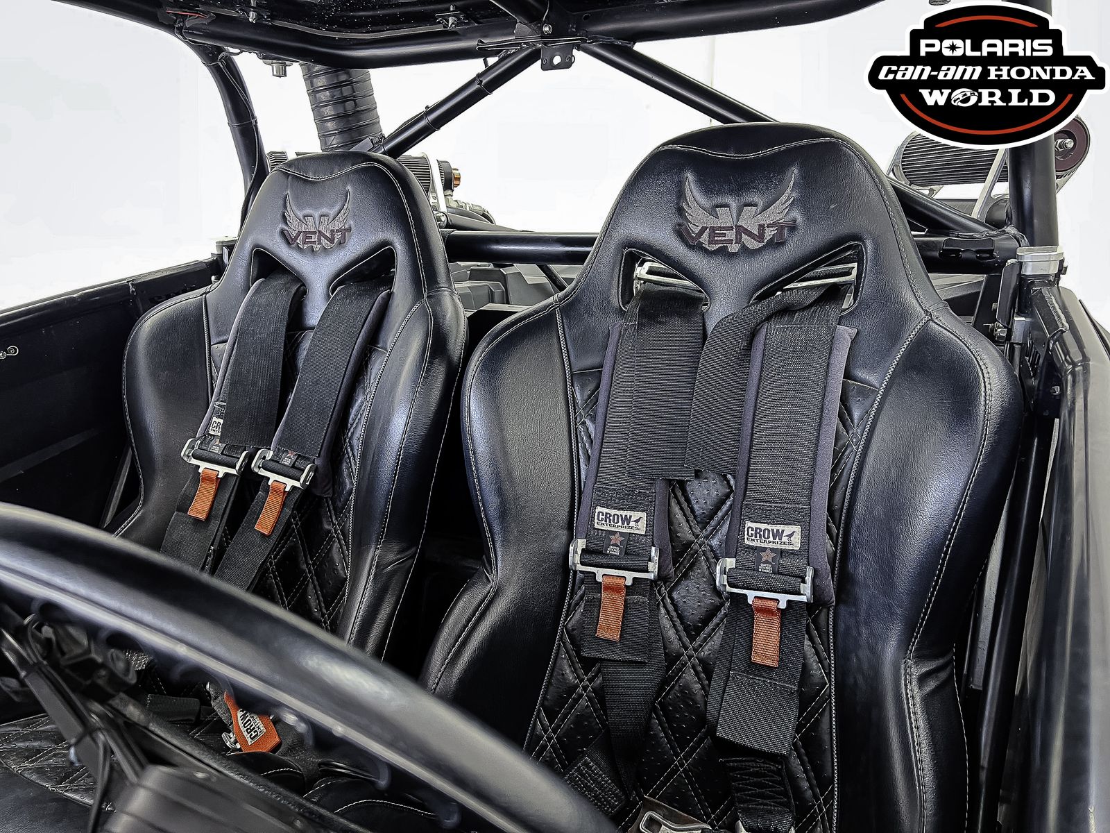 This 2017 Polaris RZR XP Turbo will conquer any terrain in front of it! This machine comes equipped with a front bumper with light pods, HCR long travel kit, King Offroad Racing Shocks, MSA beadlock rims, with 35" Gladiator tires, full doors, LED highlights, particle separator, Trinity Stage 5 exhaust, spare tire rack, Vent custom seats, Crow harnesses, Tunner, front windshield, rood and a light bar.