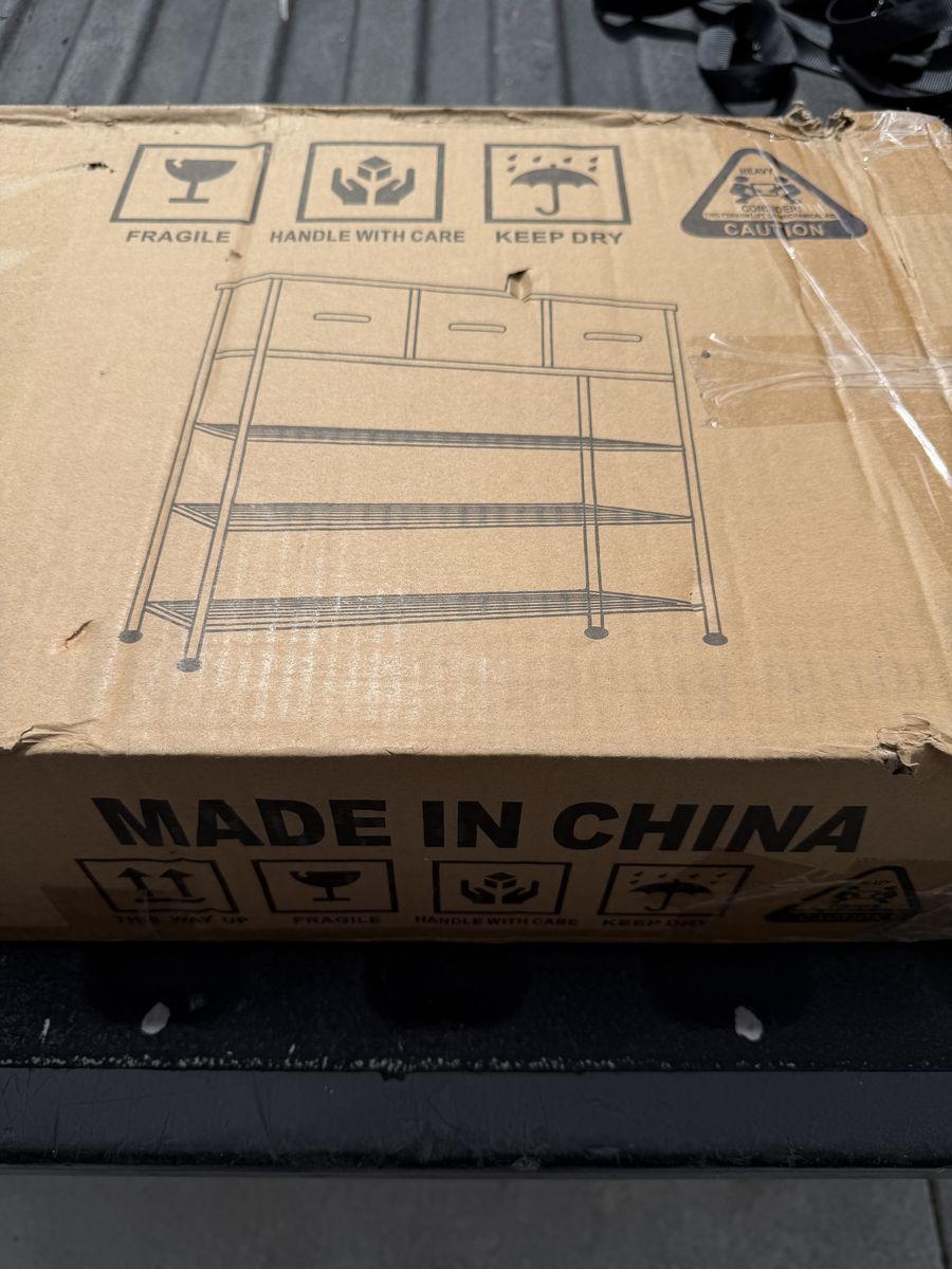 Venmo4-Tier Shoe Rack with 3 Drawers – Metal Shoe Organizer w/ Wooden Top $50