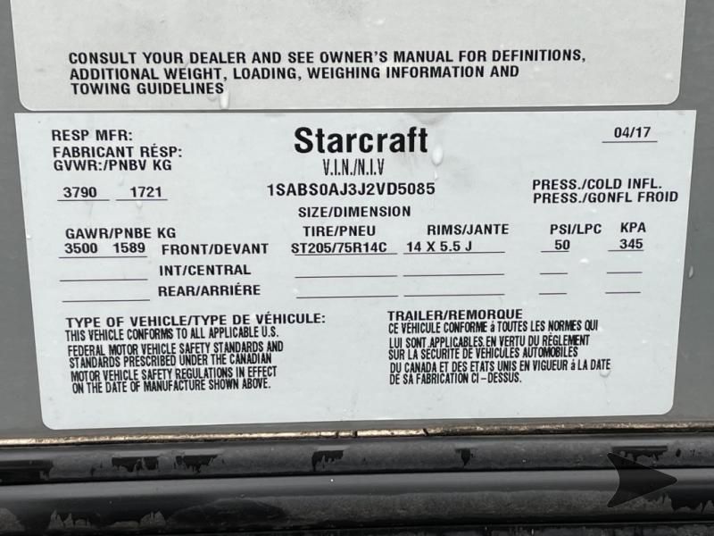 2018 Starcraft Satellite 16KS travel trailer in great condition and ready for your next camping trip! Lightweight and easy to tow, making it a great option for SUVs and half-ton trucks.