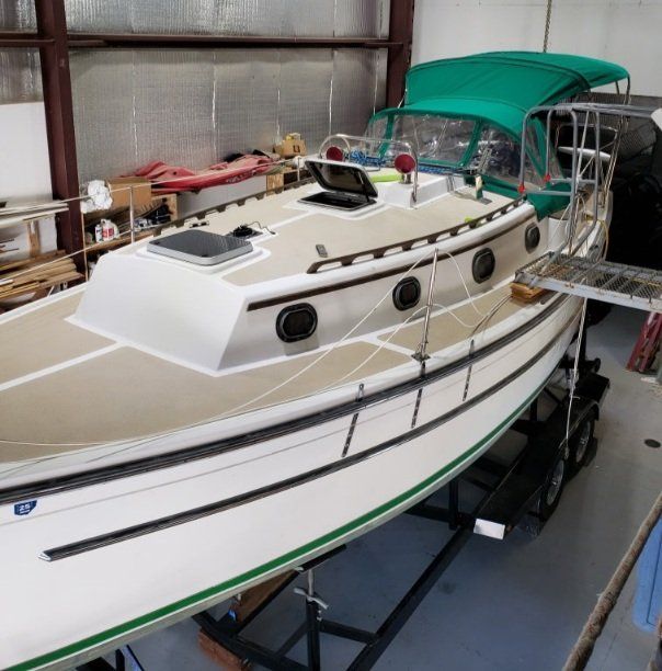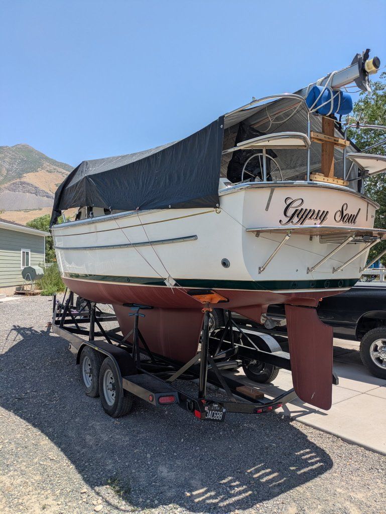 Beautiful classic lines. Designed by Robert Johnson. Ready to roll on a new custom trailer (2023). Survey included! Inspected and made all needed repairs, including new factory shaft log, cutlass bearing, dripless seal, outdoor shower, custom Iroko swim platform with ladder. Fresh new bottom with Pettit protect 4700 barrier and Pettit Trinidad HD in red bottom coat, pinstripe and boot stripe. Westerbeke 18hp diesel engine. LOA: 29.58 ft LOD: 26.92 ft LWL: 24.25 ft Beam: 9.50 ft Displacement: 6,000.00 lb Ballast: 2,500.00 lb Max Draft: 3.50 ft Furler, Full batten main sail, Jib sail (both in great condition). Lazy Jack system. Beautiful salon, with teak throughout. Bimini, Dodger, and cockpit cushions. Raymarine wind, speed, depth instruments. VHF Radio. Stereo system.