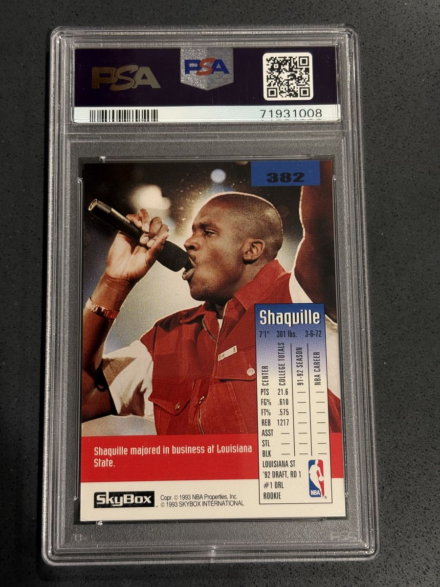 ApplePay1992-93 SkyBox Shaquille O'Neal #382 Rookie PSA 9 Orlando Magic Basketball Card