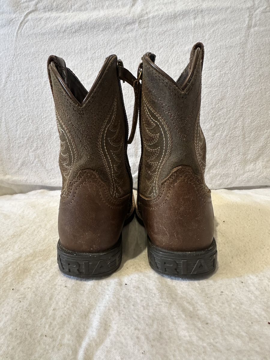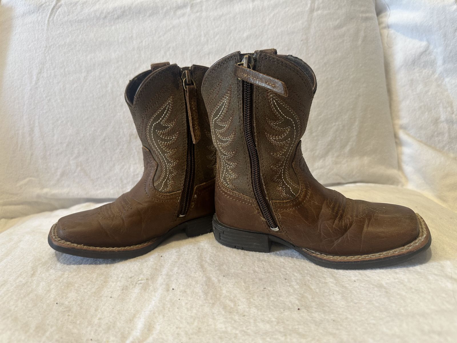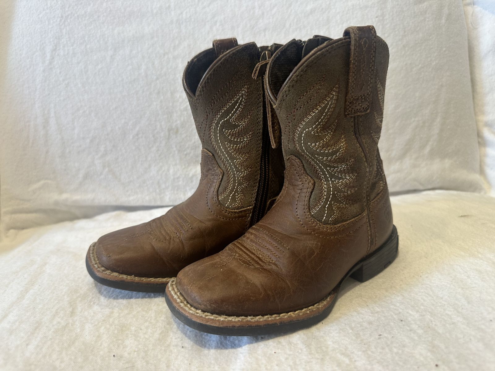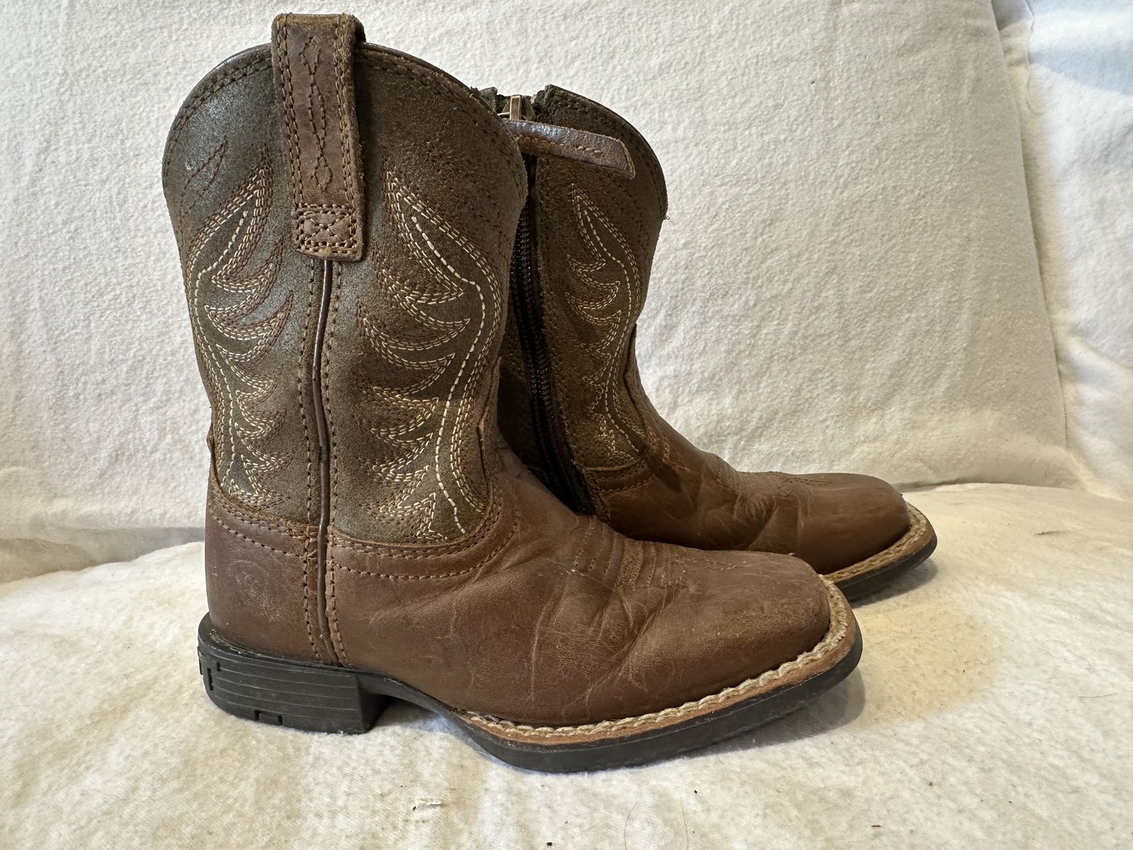 Ariat toddler, size 8 brown leather western boots with side zippers and embroidered uppers. These are in good condition, see photos for details. I take cash or Venmo, but cash is preferred. Text is best. 801-201-4446. Check out my other ads for additional sizes and styles.