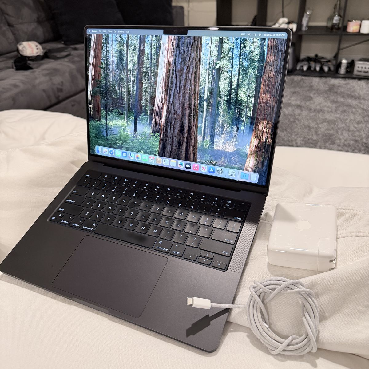It’s in really great condition and has been well taken care of. Battery is at 100% health with only 38 cycle counts, so it’s still basically fresh. No issues at all, runs perfectly.