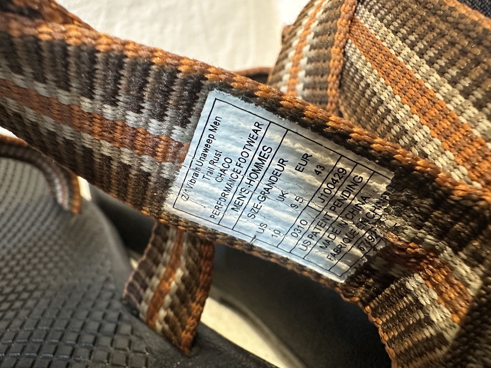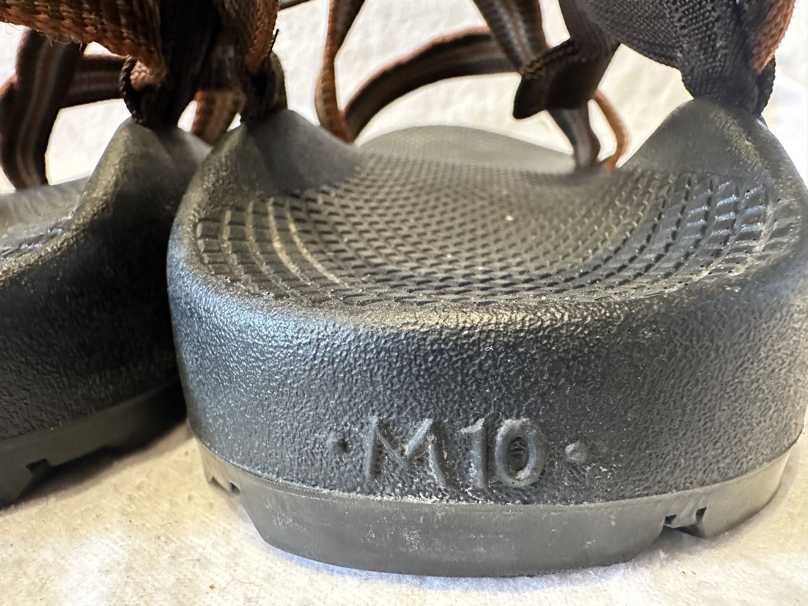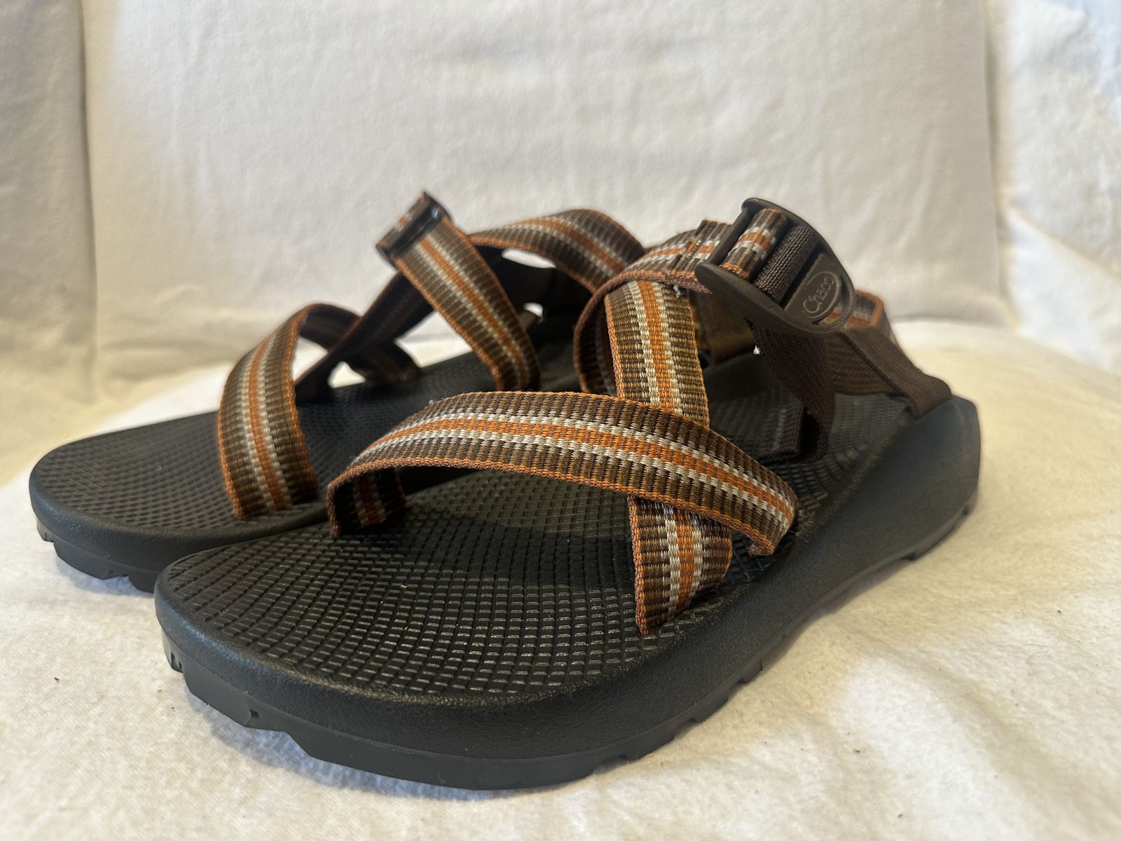 Chaco men’s size 10 brown/orange striped hiking sandals in lightly used condition. See photos for details. I take cash or Venmo, but cash is preferred. Text is best. 801-201-4446. Check out my other ads for additional sizes and styles.