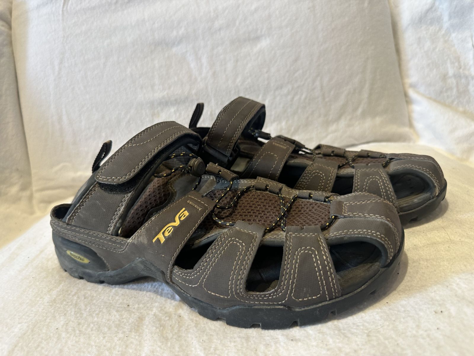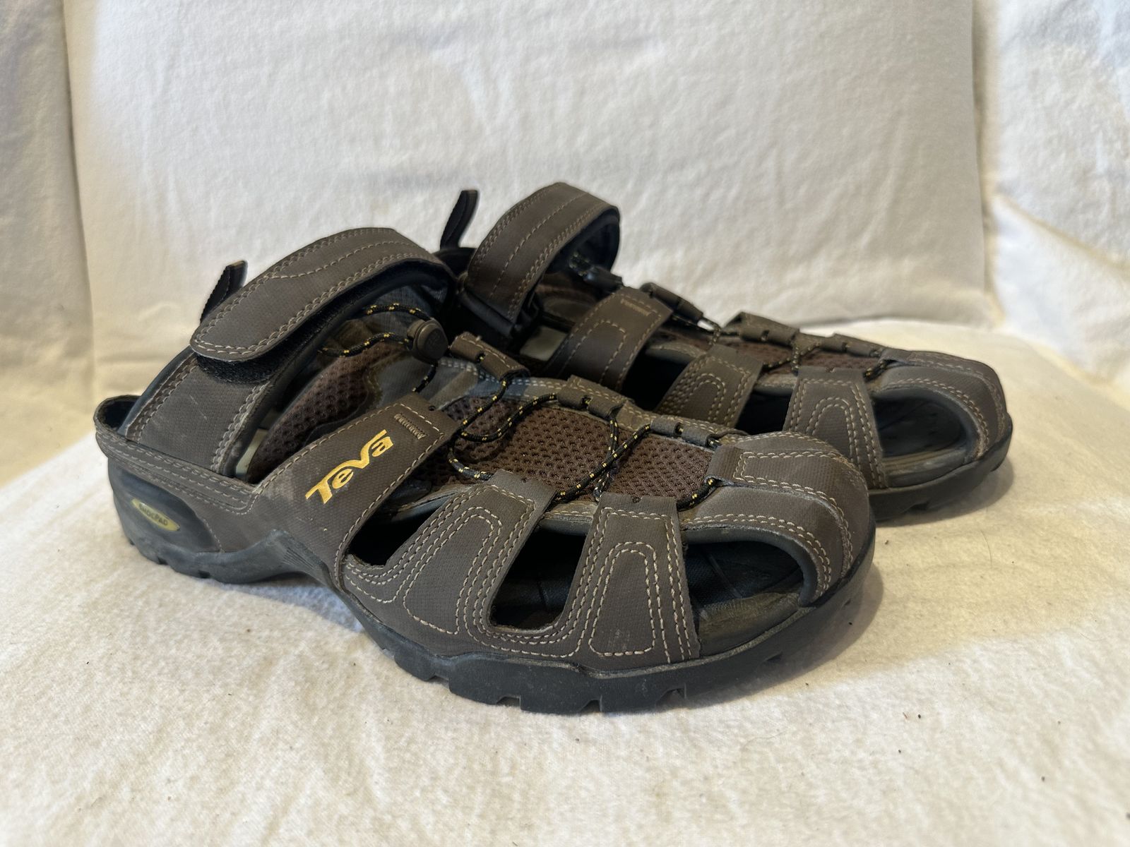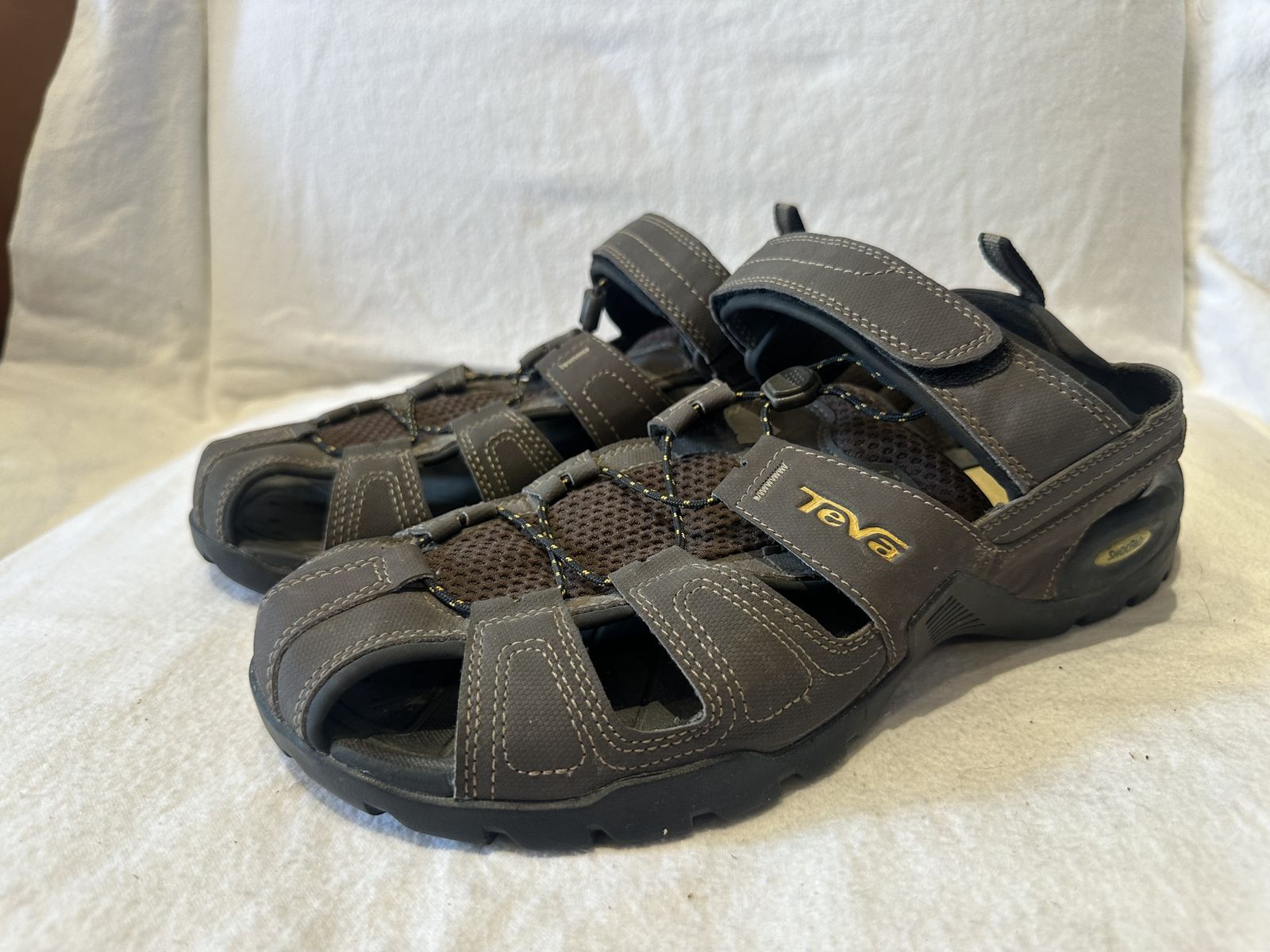 Teva men’s size 11 brown leather/mesh closed toe, hiking sandals. These are in good condition, see photos for details. I take cash or Venmo, but cash is preferred. Text is best. 801-201-4446. Check out my other ads for additional sizes and styles.