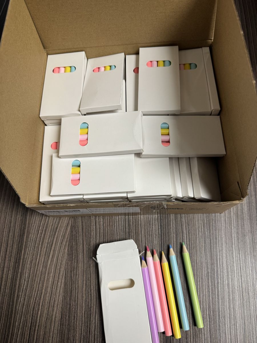 ApplePayParty Favors Mini Colored Pencils. Great for holidays, weddings, partys, and events. Each pack contains 6 pencils. I have 2 boxes available, there is about 50 packs per box asking $30 each box or $50 for both boxes. Pickup in Salt Lake.
