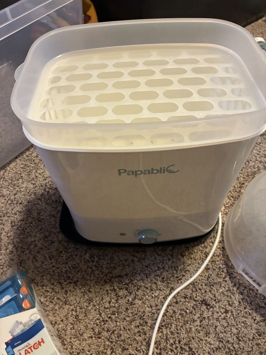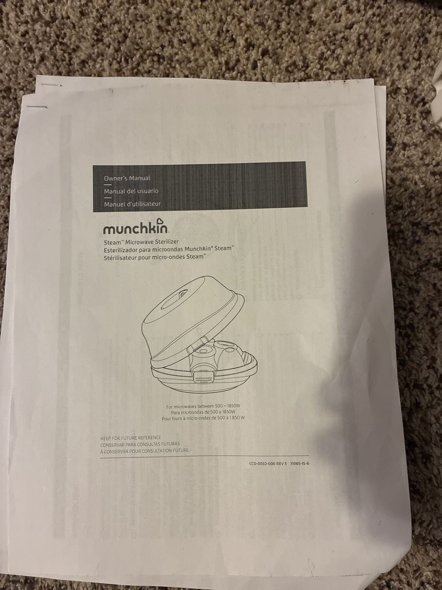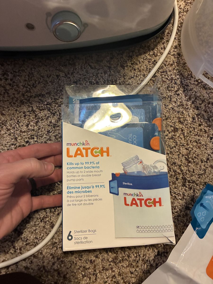 VenmoIncludes manuals/instructions. See video. Munchkin Steam Microwave Sterilizer Munchkin Latch sterilizer bags (3 unused- awesome for travel!) Papablic plug in