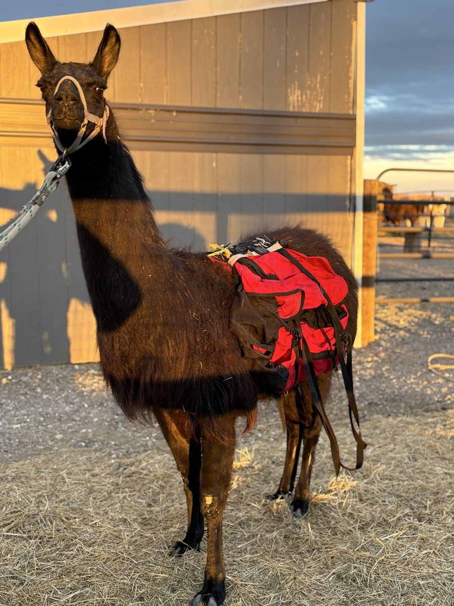 Female pack llama. Fairly easy to catch, comes to grain. Has been off the trail for a couple of years but does remember and is very willing. 8 years old. 46” tall Not registered Located Powell Wyoming Do have other llamas available as well.