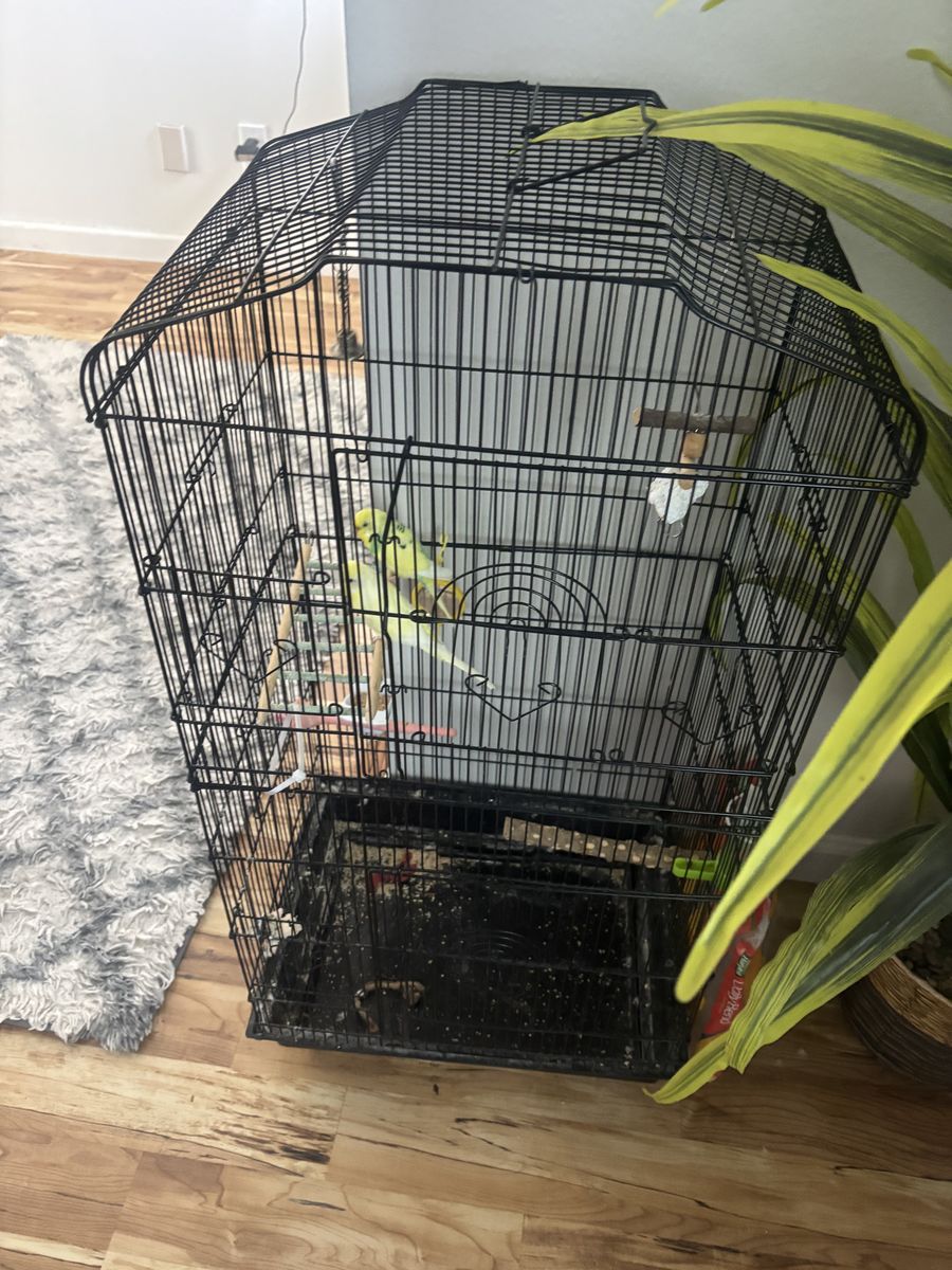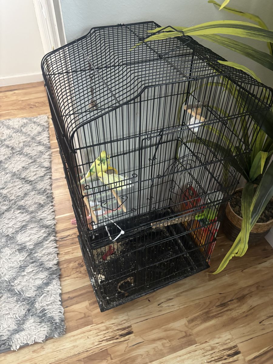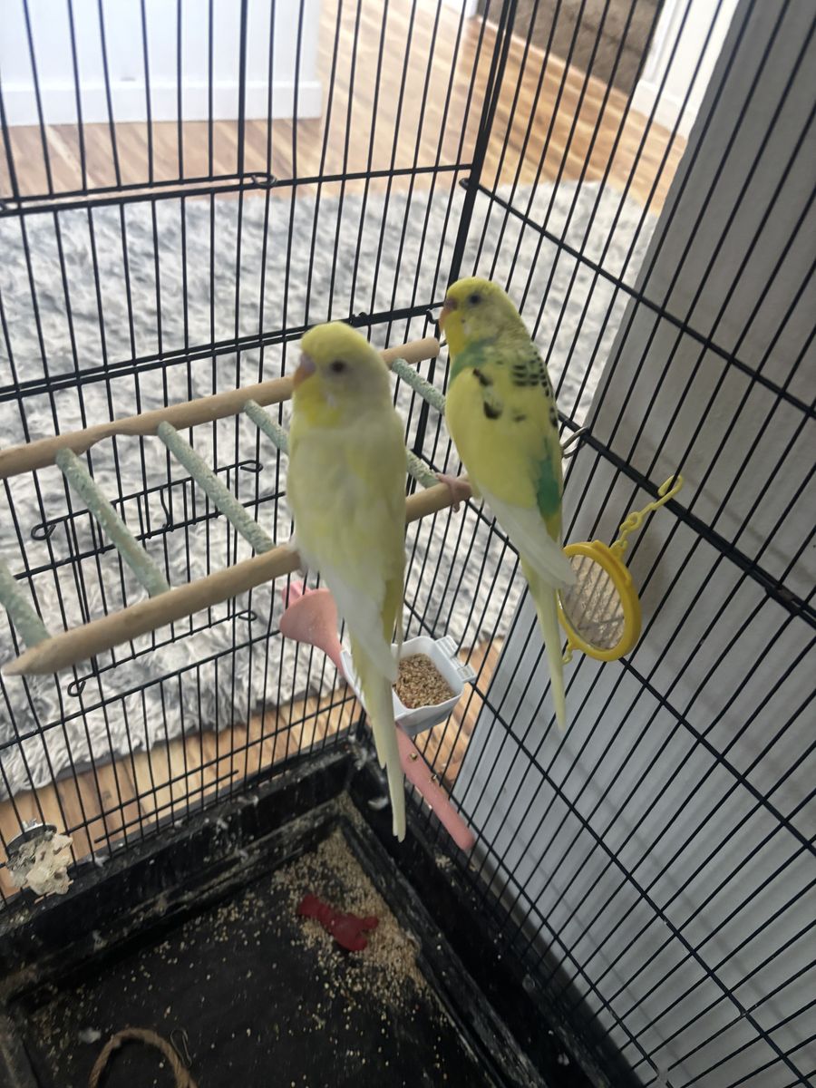 2 lovebirds with cage for 60$