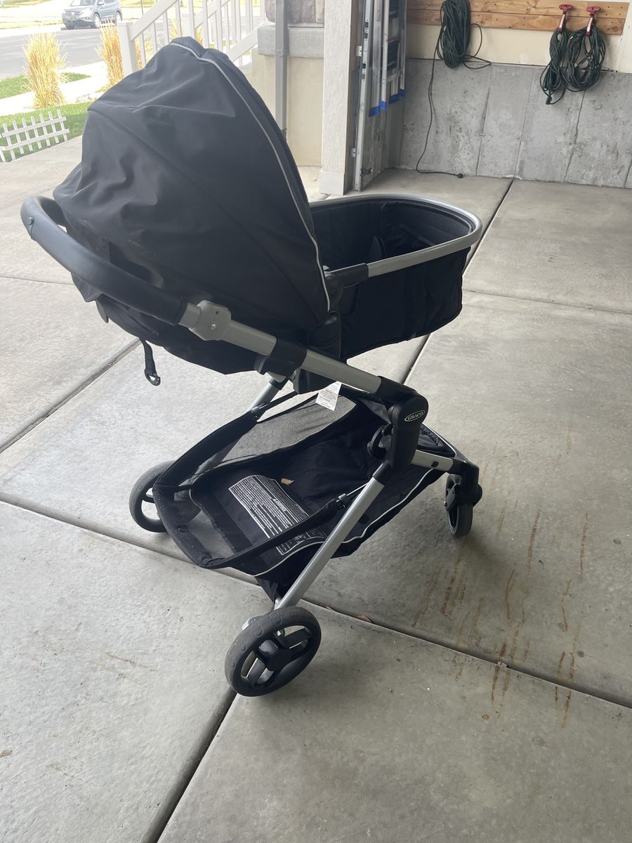 VenmoGraco stroller. Accepts Graco snug ride / snug fit baby carriers. Also has the toddler basket seat and tray.