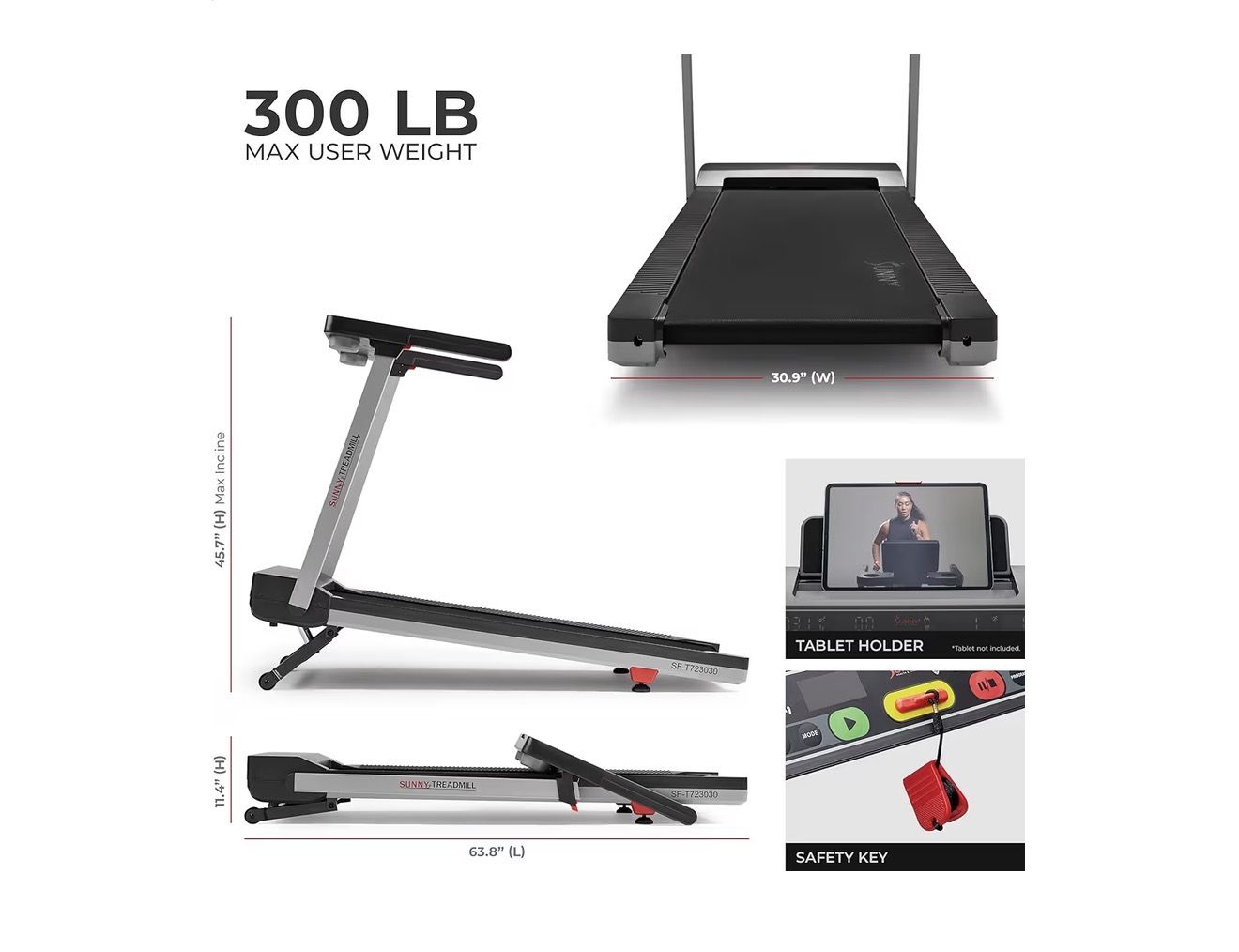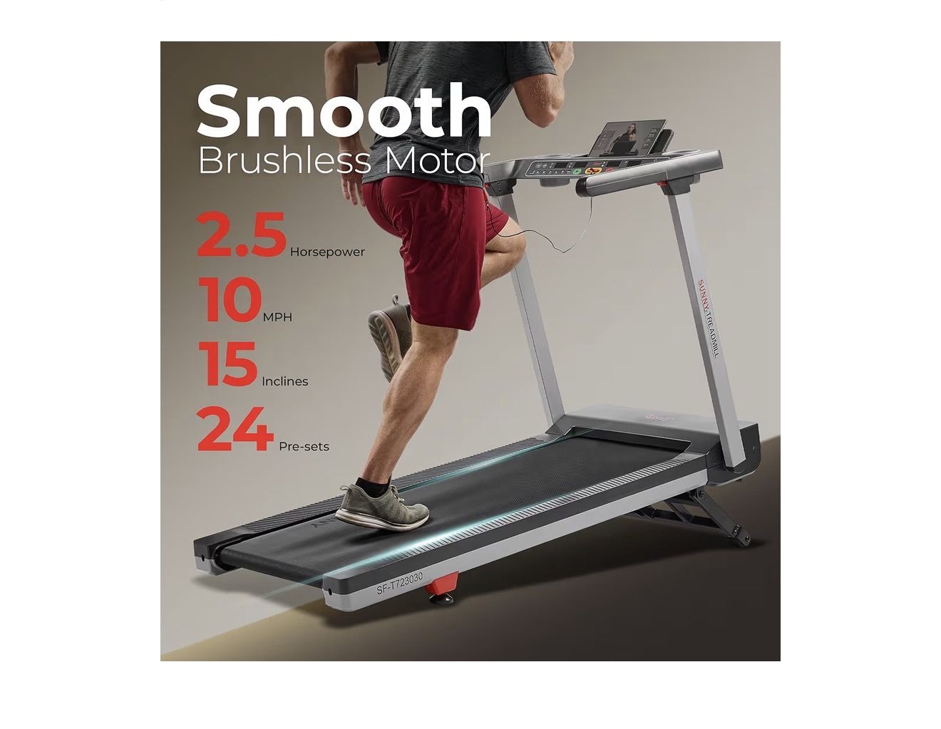 Sunny Health & Fitness Fully Assembled OneClick-Fold 20" Smart Treadmill with Auto Incline & SunnyFit App