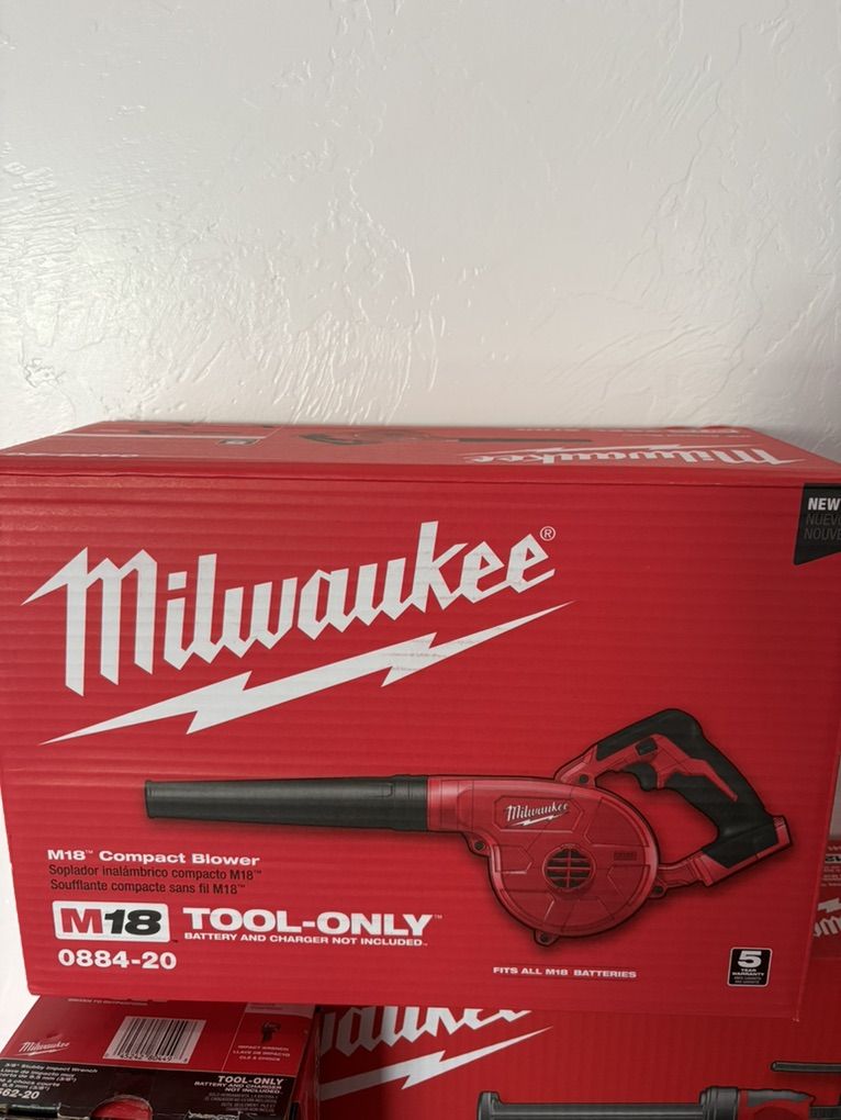 M12 caulk gun 170$ M12 2.5 battery 70$ M12 used speaker 80$ obo M18 big speaker 170$ Packout with wheels 150$ M12 inflator 95$ M18 compact blower 105$