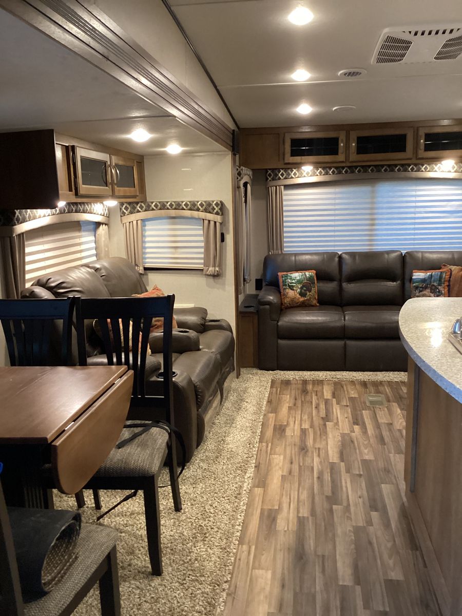 VenmoVery clean well kept trailer. Never lived in, just camping a few week a year. Great layout, huge pantry closet, fireplace, tv, dvd entertainment system. New queen mattres, big bedroom closet, lots of storage.