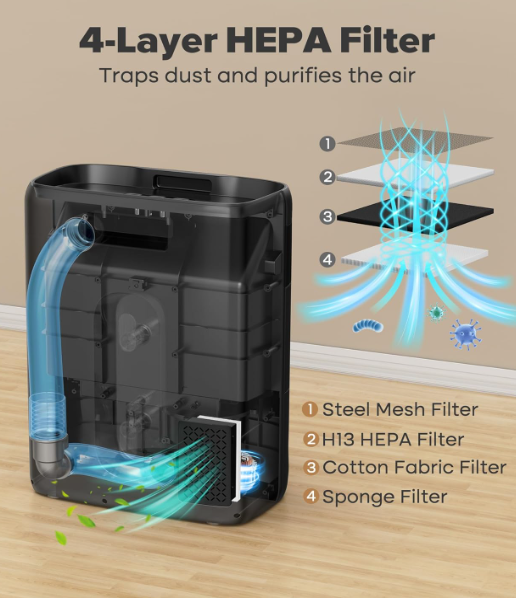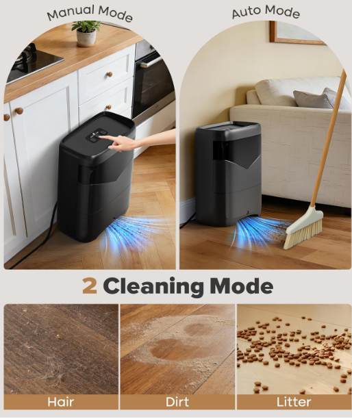 Zelle6L Large-Capacity Dust Container: Featuring a spacious 6-liter collection bin, allowing it to store large amounts of dust, hair, and debris before needing to be emptied. This design reduces the frequency of disposal, making it ideal for busy households, salons, and pet-friendly environments. The unit operates as a convenient vacuum trash can and even a vacuum trash can for sweeping, allowing you to sweep debris directly into the opening for instant suction. The wide bottom opening makes emptying simple, while the bag-free design means it works as a cost-saving bagless vacuum cleaner, eliminating the need for replacement dust bags.