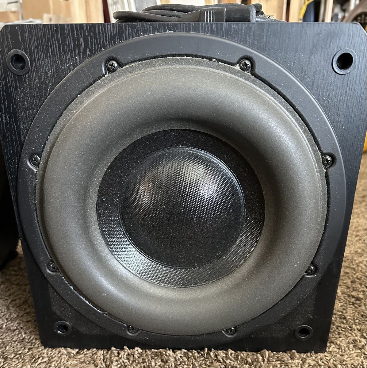VenmoSunfire D-10 subwoofer. Would be awesome if worked. Could be something simple. Currently has a feedback type of hum sound when on. Not from source, not from power outlet or cable, so not sure.