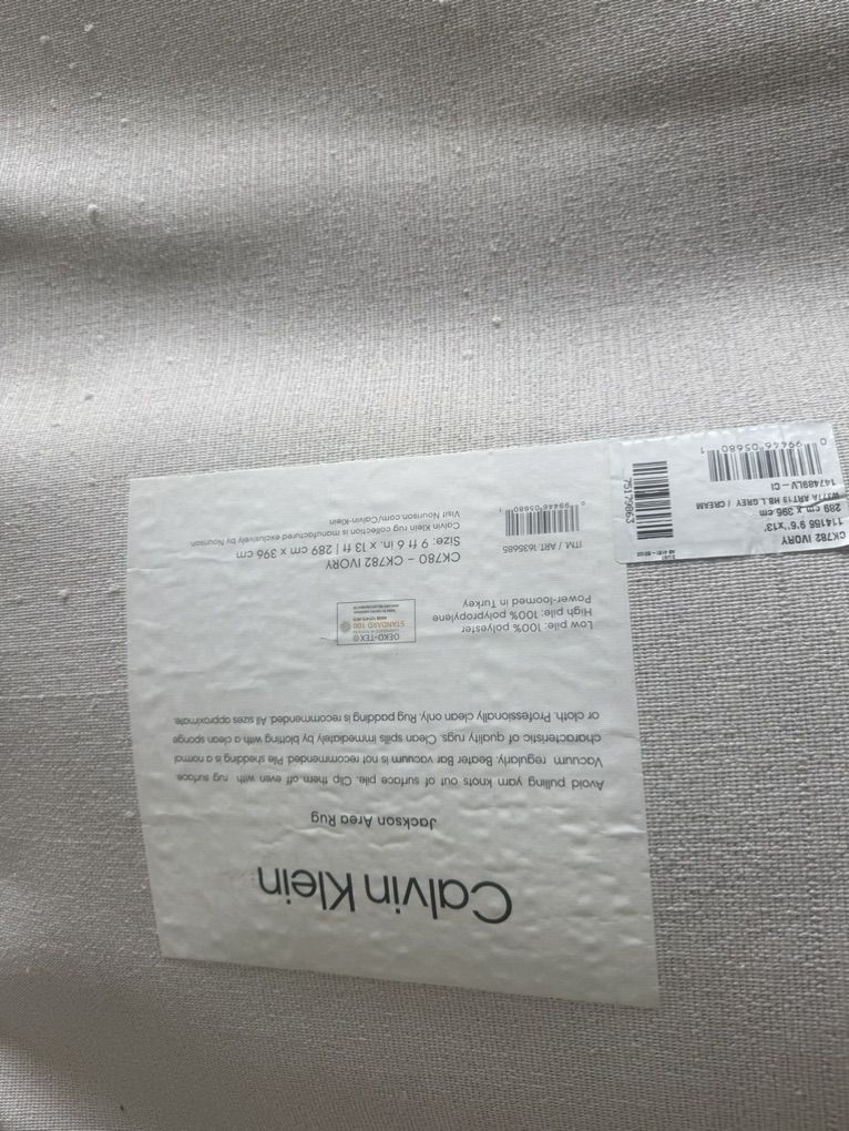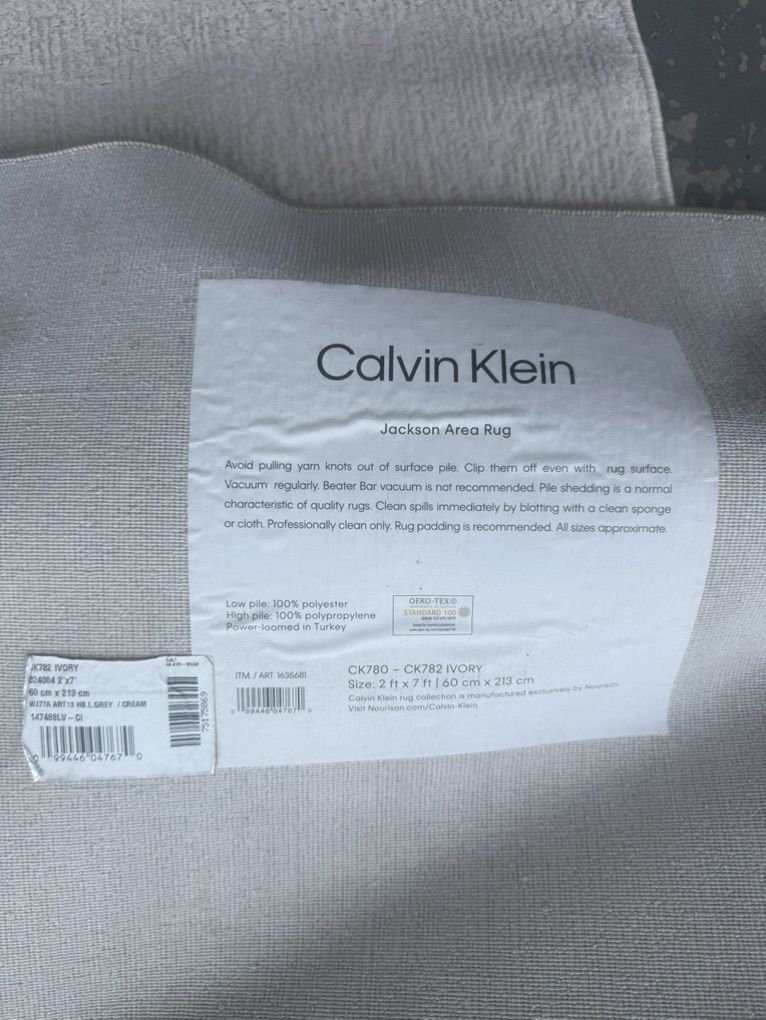 Calvin Klein Home Jackson Solid Area Rug 9'6x13' area rug with 7'x2' runner I just pulled out of box. Brand new. Box was open and in storage.