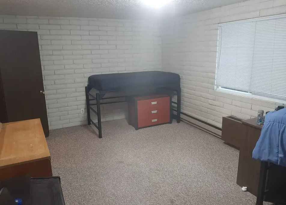 This is an great shared 2 bedroom apartment with 3 roommates. They're very friendly and clean guys. The place is spacious with plenty of storage space, a solid bedroom, and a big kitchen/living area for only $450 a month (all utilities included)! It's just a 4 minute walk to reach campus! I am getting married, otherwise, I would be staying!