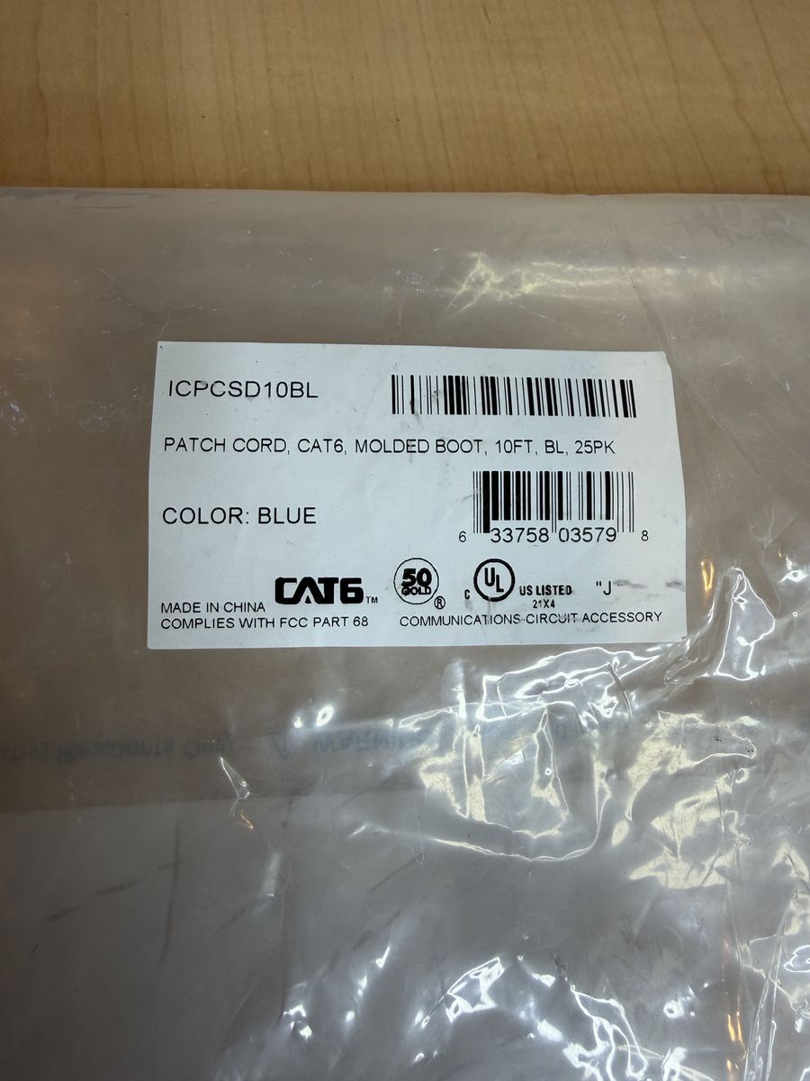 I have a whole box of these cables available. They are 10 foot Cat 6 snagless patch cables. They are $5 each, or less if you buy multiple. I also have other various Cat 5 patch cables in 7 foot and 16 foot lengths. Make me an offer!