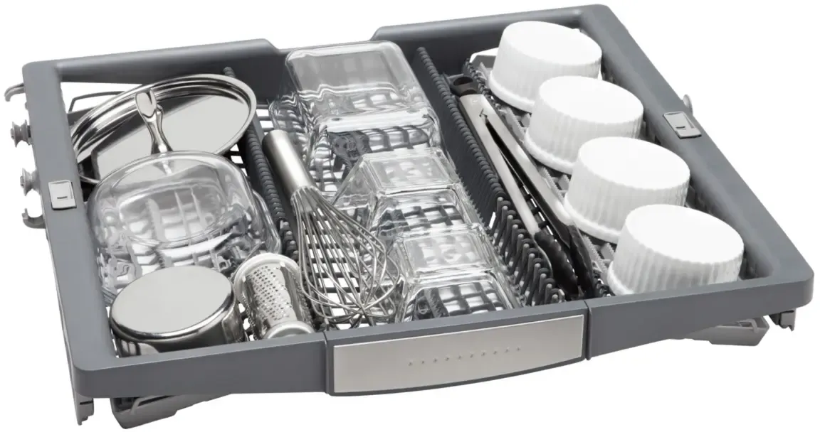 The Flexible 3rd Rack with fold-down sides adds 30% more loading area, perfect for utensils and ramekins.