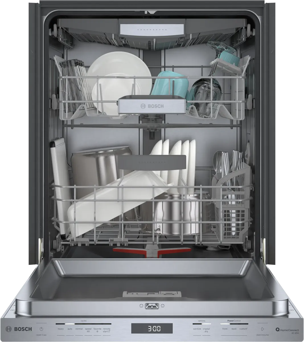 With Bosch's PrecisionWash®, simply start your dishwasher and walk away. Precision spray arms target tough, stuck-on food while a sanitized option eliminates 99.9% of bacteria for a reliable clean, every time.