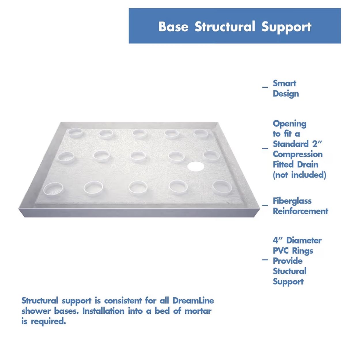 Drain opening fits standard 2 in. compression fitted drains (Drain not included)