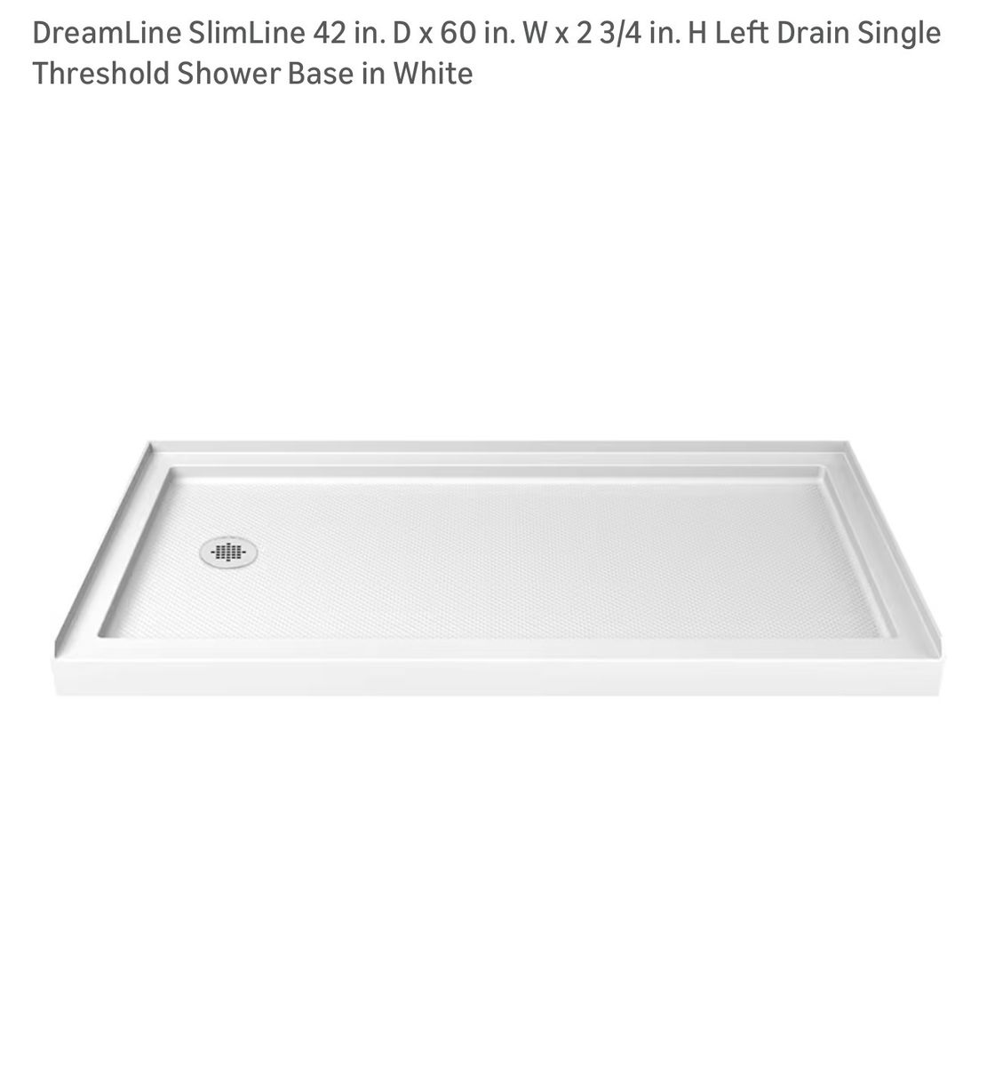 VenmoDreamLine SlimLine 42 in. D x 60 in. W x 2 3/4 in. H Left Drain Single Threshold Shower Base in White