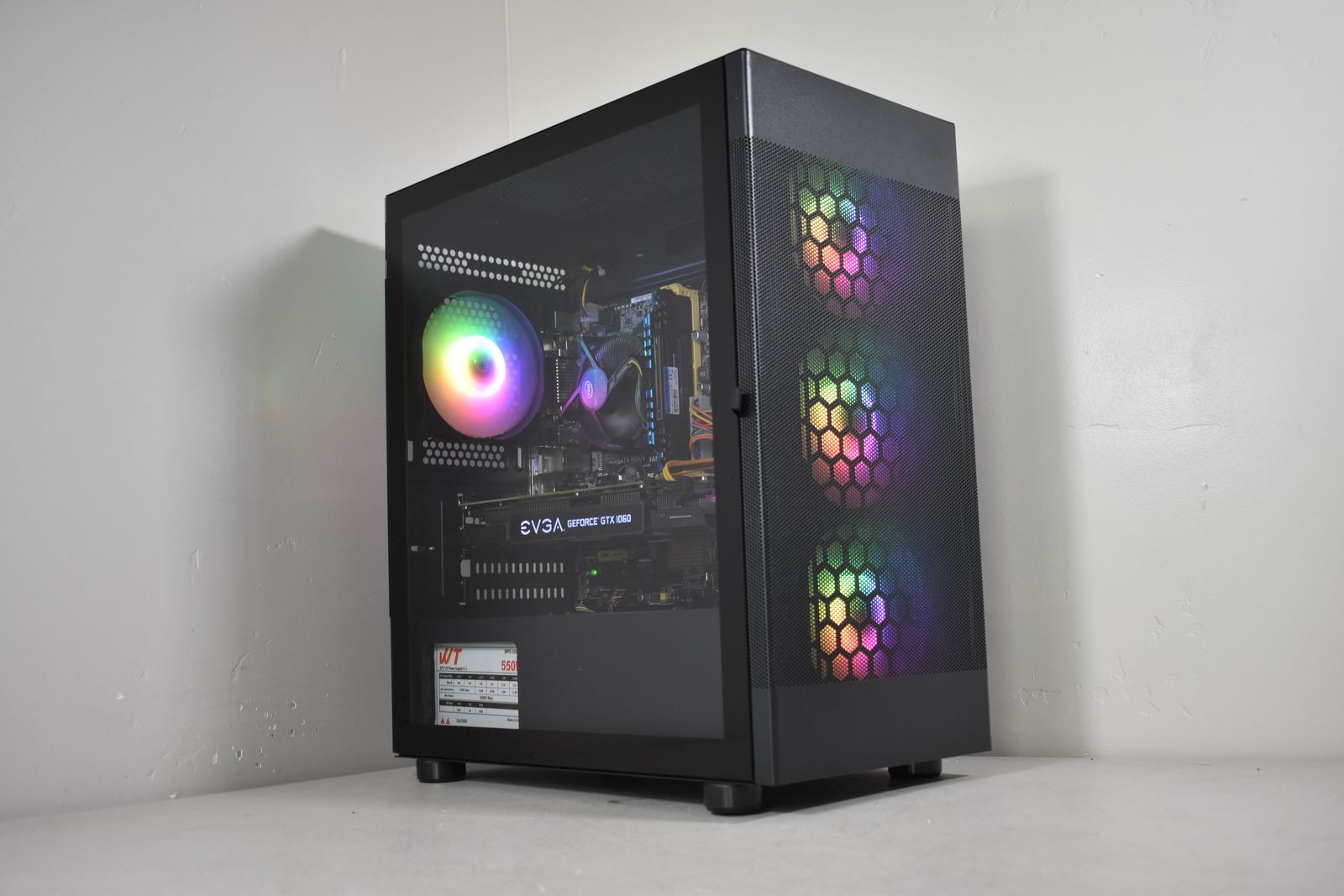 Case: Sama ARGB Tempered Glass Case! This case comes with 4x ARGB Fans. All ARGB is synced and controlled with a button on the top of the case with many many different lighting modes!