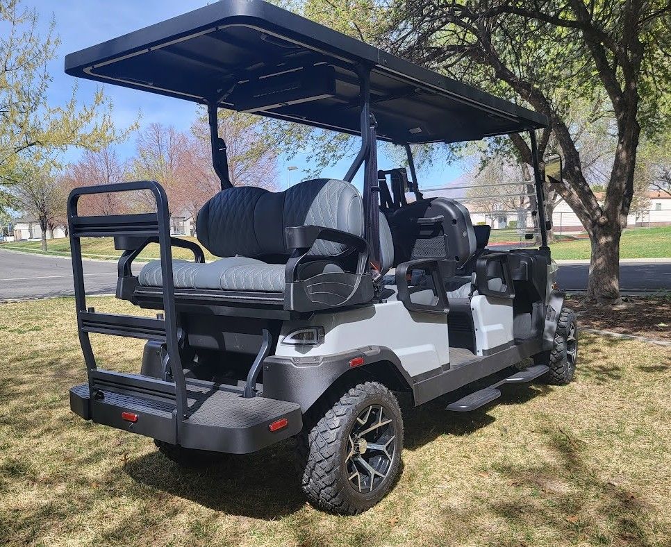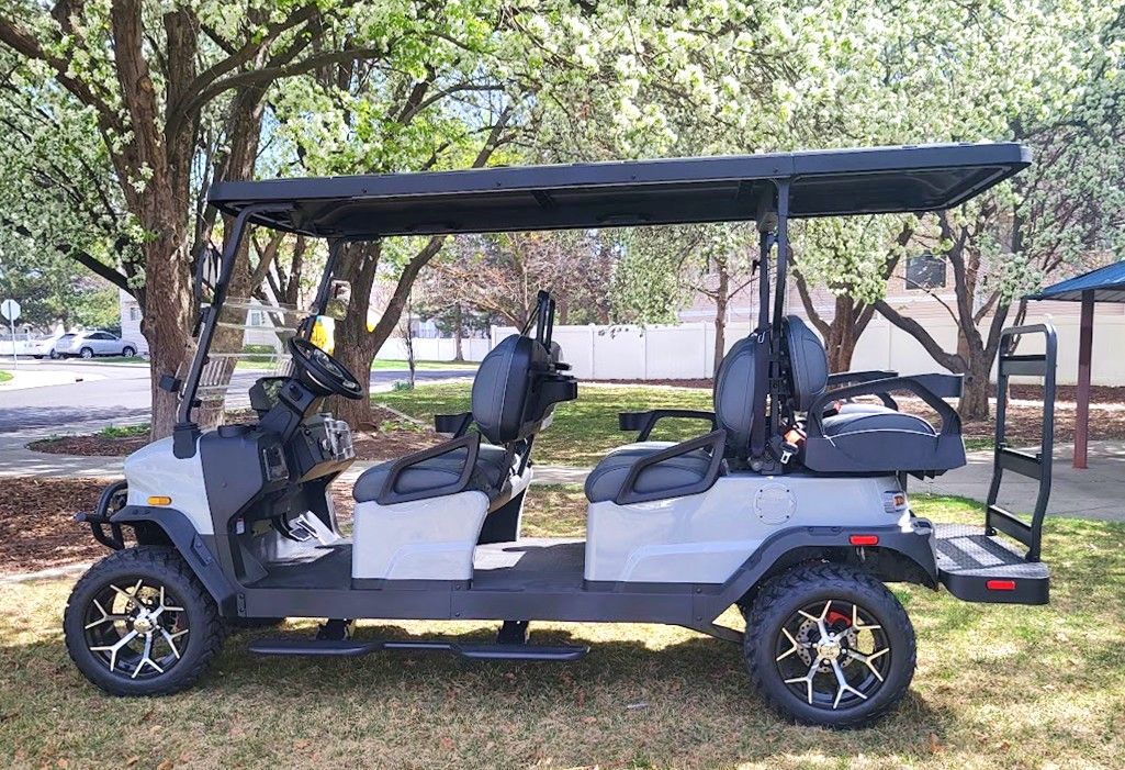 Available now at Intermountain Golf Cars in Sandy, Utah: The New 2026 Denago EV Rover XL6 LSV in striking Gray! This lifted 6-passenger golf cart is street-legal and packed with premium features for style, performance, and convenience.