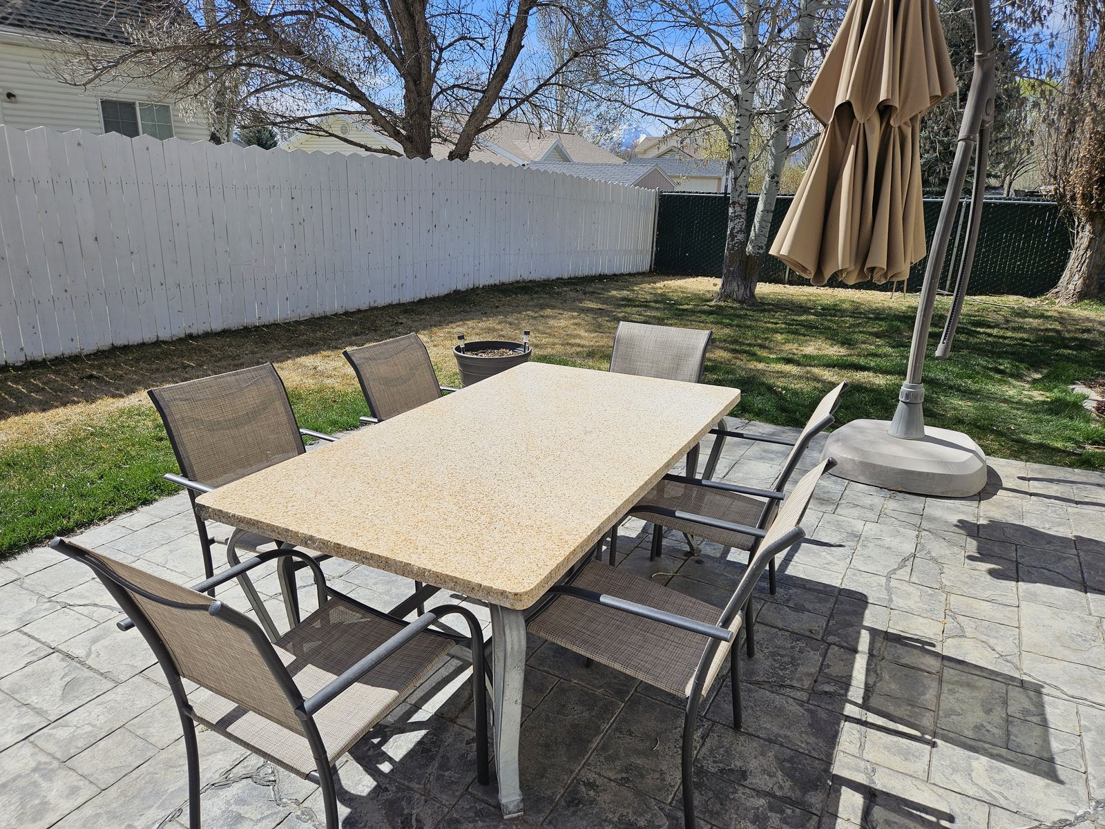 ZellePatio table and chairs. Chairs were bought last year. Seats 6.