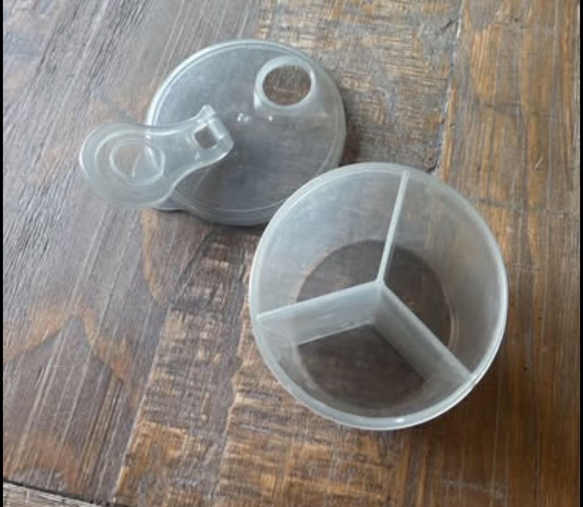 Dr. Browns formula travel dispenser with lid. Color: Gray. BPA free and holds up to 27 oz of formula. 3 separate compartments hold enough formula to make three 9 oz bottles.