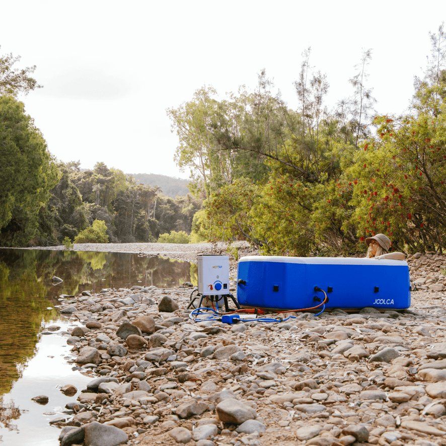 VenmoJOOLCA HOTTAP 2 person portable inflatable hot tub. This neat little hot tub is made out of the same material as an inflatable stand up paddle board. It is designed to be used in conjunction with the JOOLCA portable propane water heater or similar. Water heater not included. Used once on the back patio.
