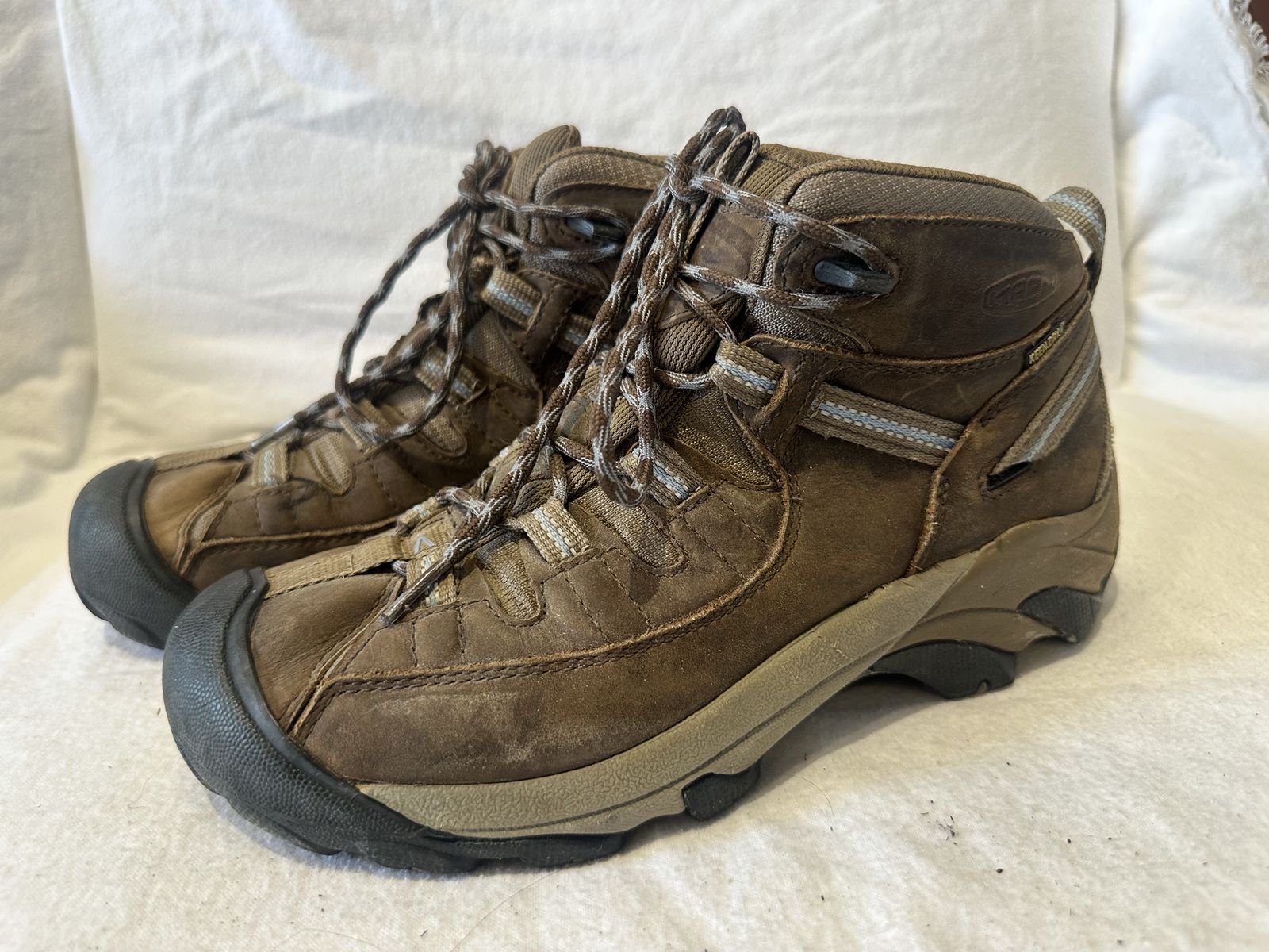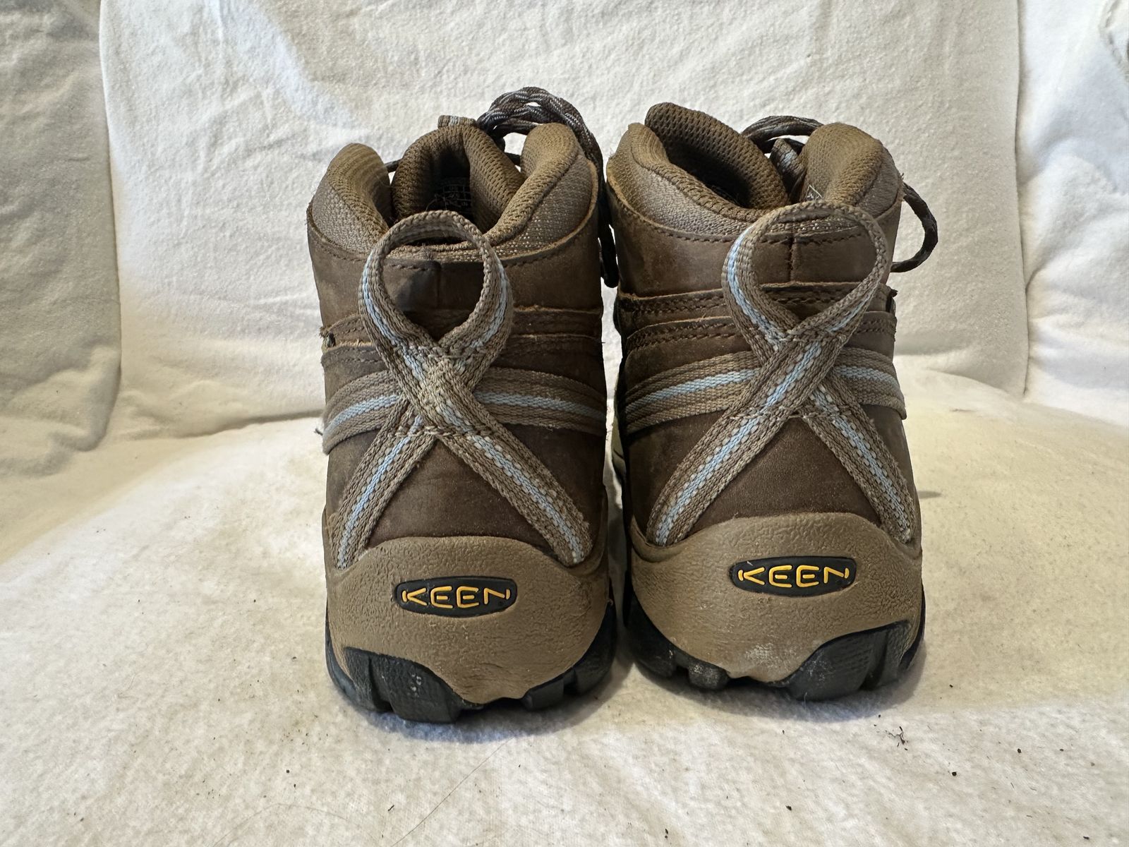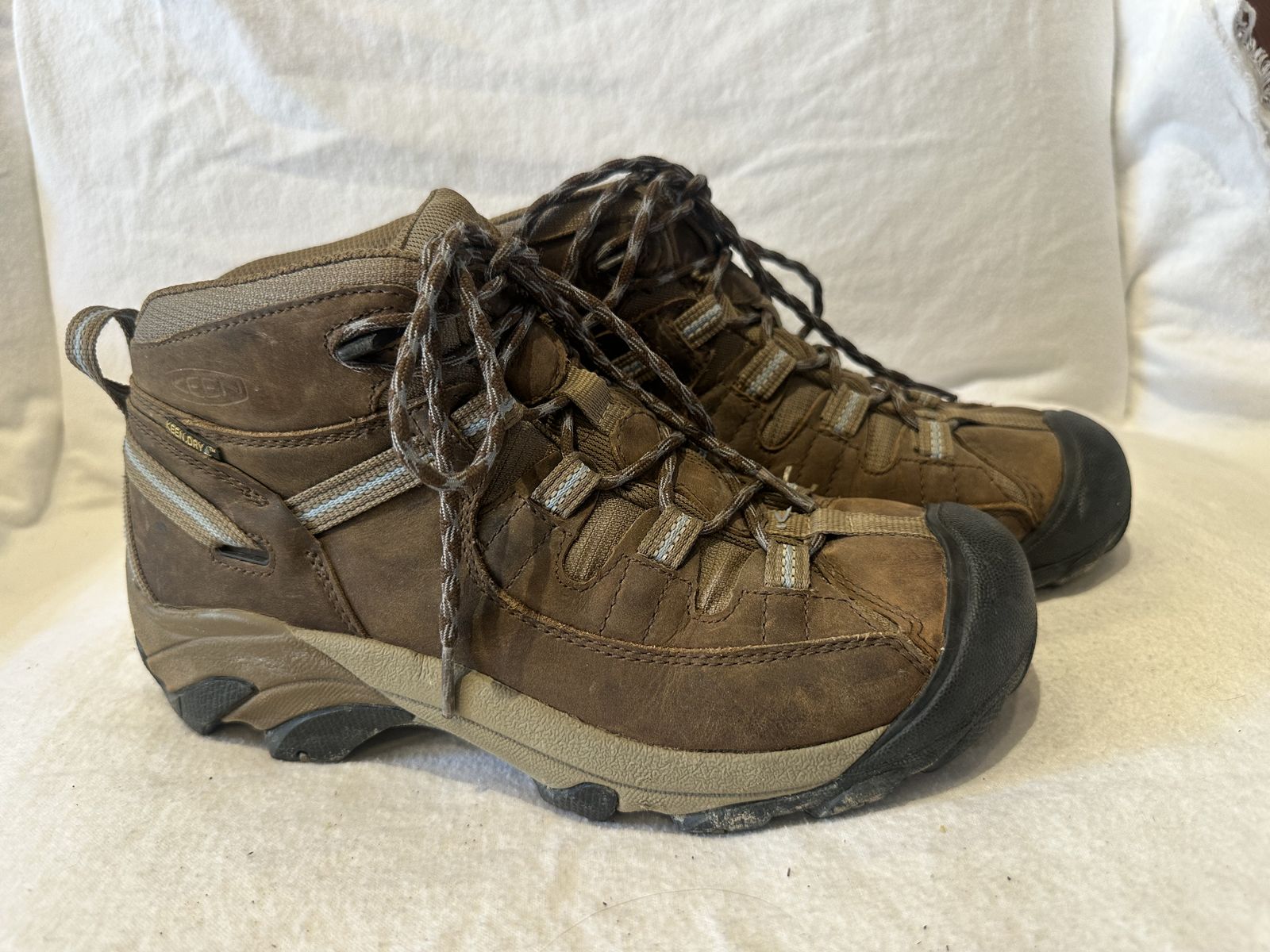 Keen women’s size 9.5 or EU 40 or men’s size 8 brown leather and textile with blue trim waterproof mid hiking boots. These are in barely used condition. See photos for our details. I take cash or Venmo, but cash is preferred. Text is best. 801-201-4446. Check out my other ads for additional sizes and styles.