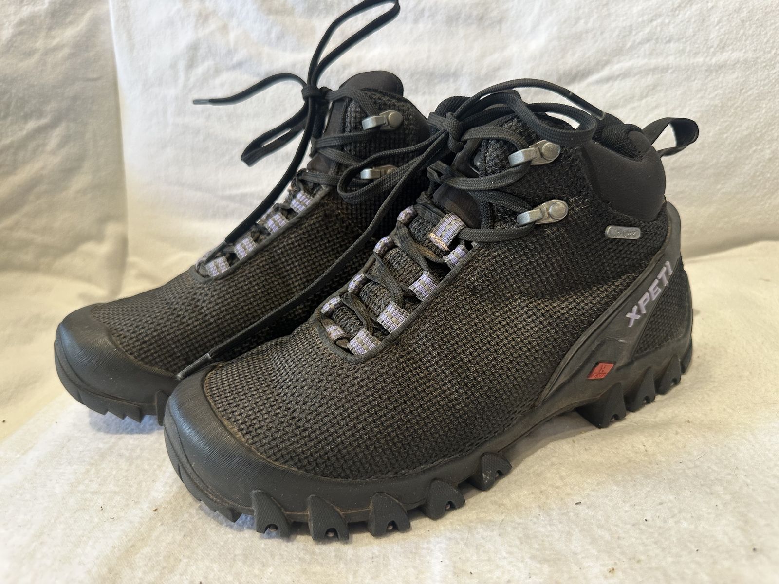Xpeti women’s size 8 or EU 38.5 charcoal gray mesh waterproof mid hiking boots in lightly used condition. See photos for details. I take cash or Venmo, but cash is preferred. Text is best. 8012014446. Check out my other ads for additional sizes and styles.