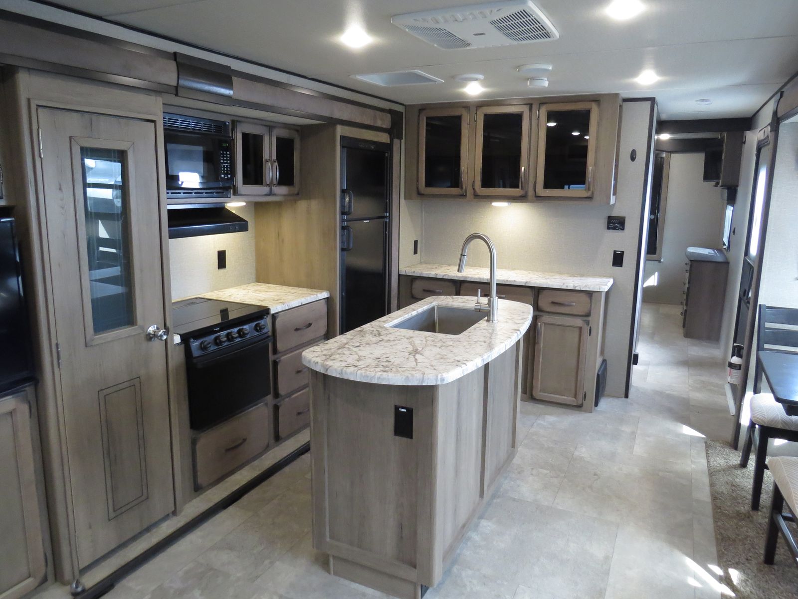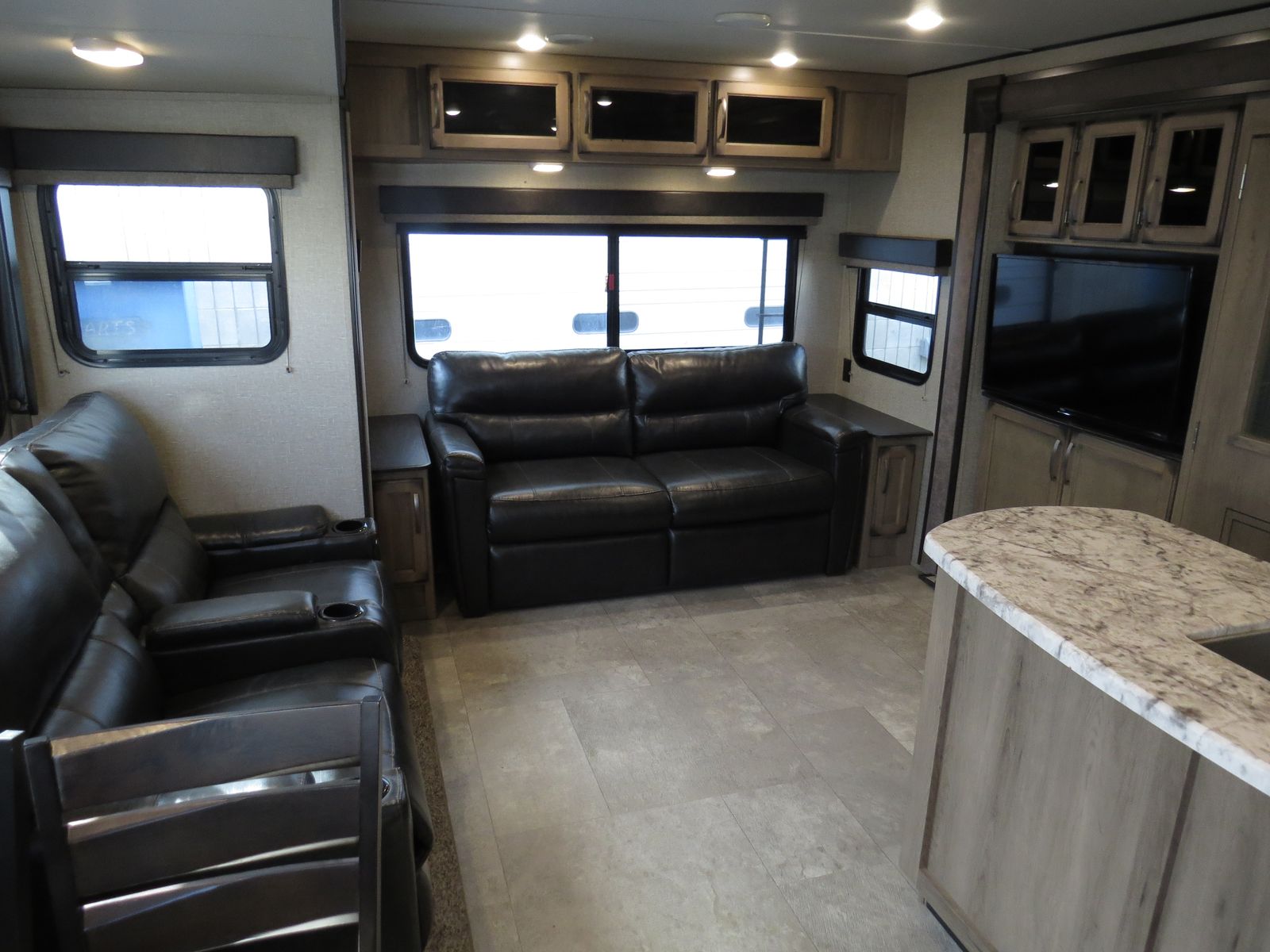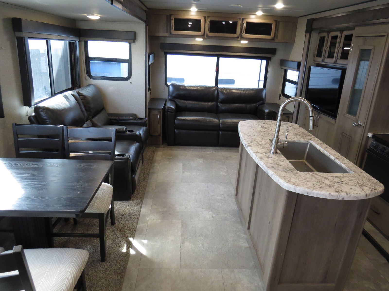 3 Slides, Front walk around queen bed Slide Out, Bathroom, Washer & Dryer Hook ups, Underbelly Cover, Side Kitchen & Entertainment Slide, Lots & Lots of Storage, Island counter space, Dinette & Theater Seats Slide, Couch makes down, (2) Electric patio awnings, A/C unit and Heat.