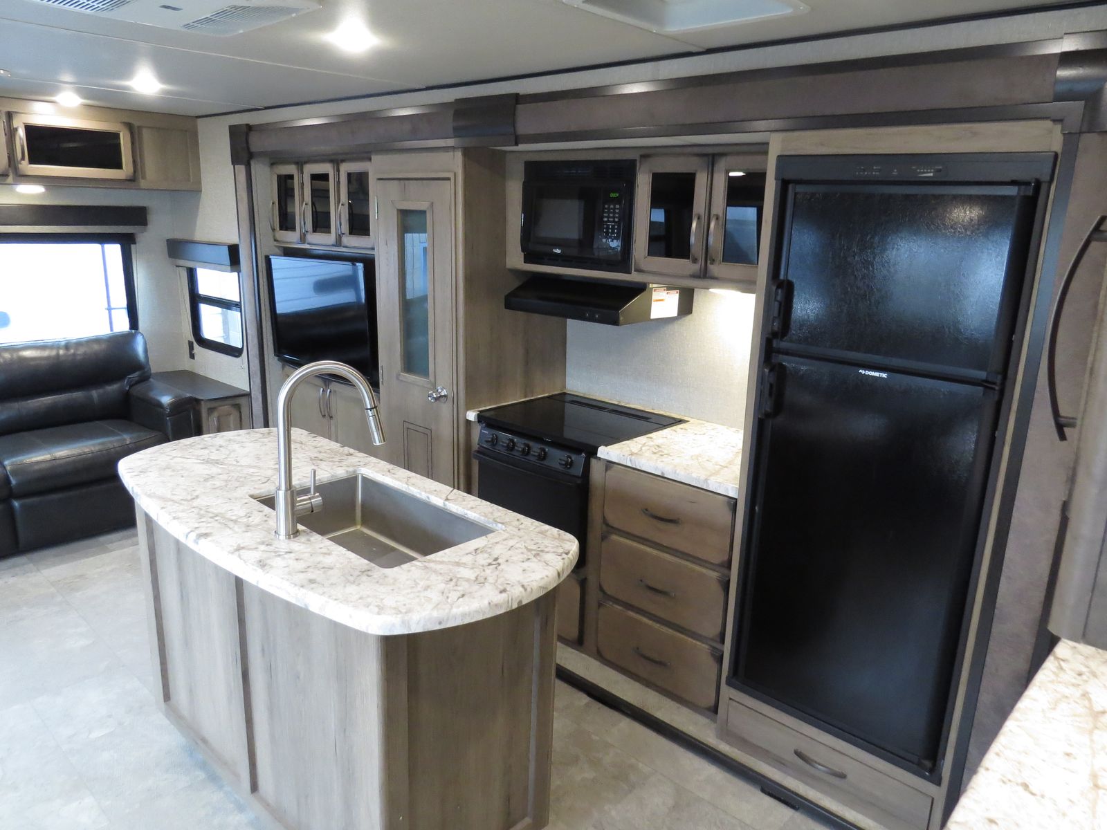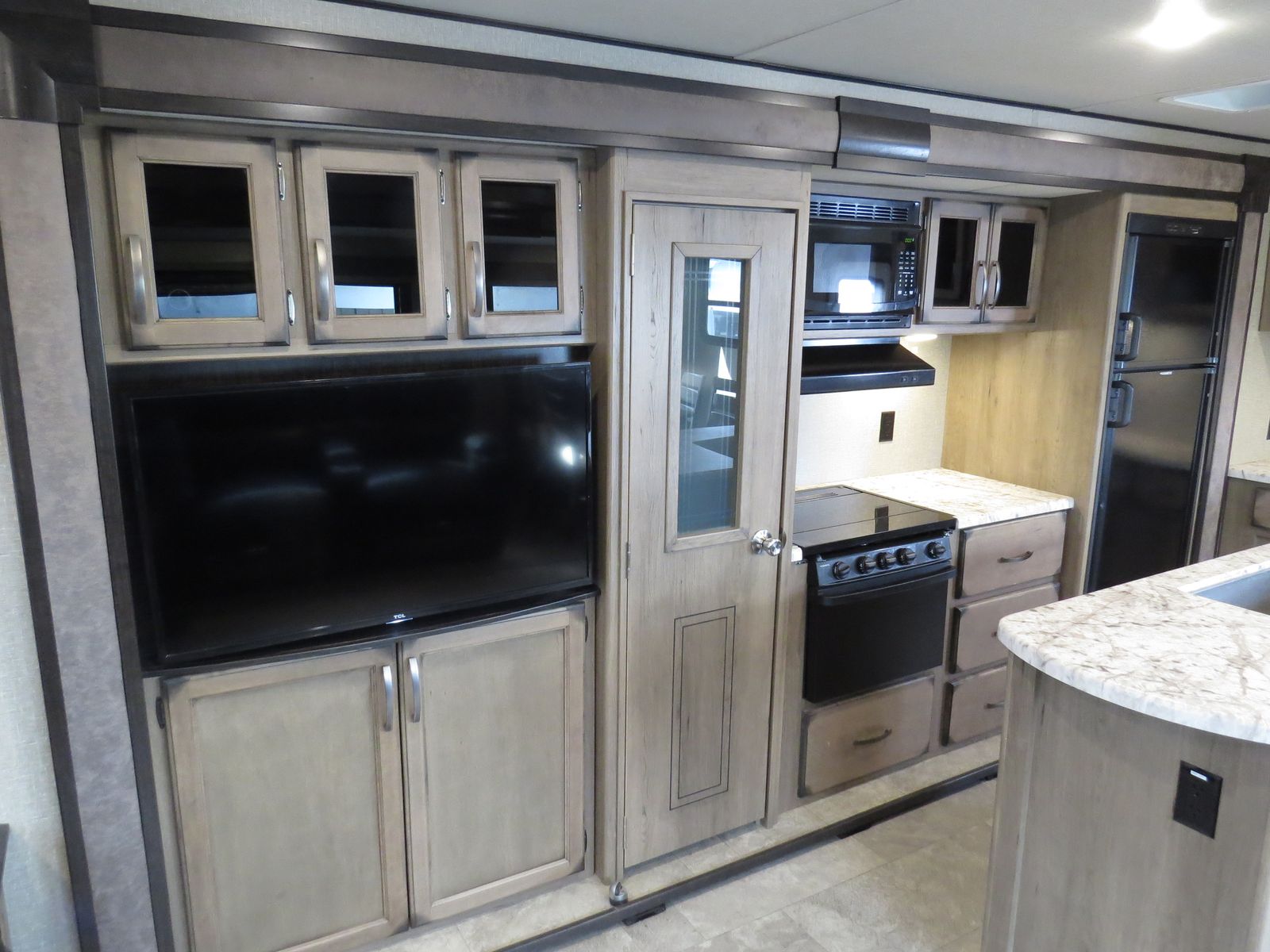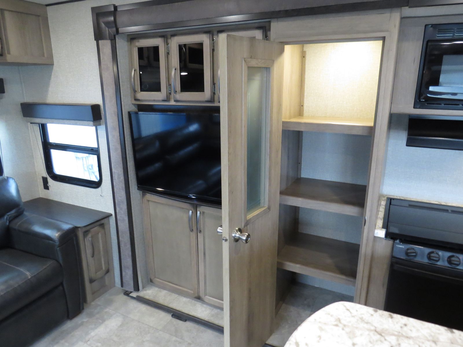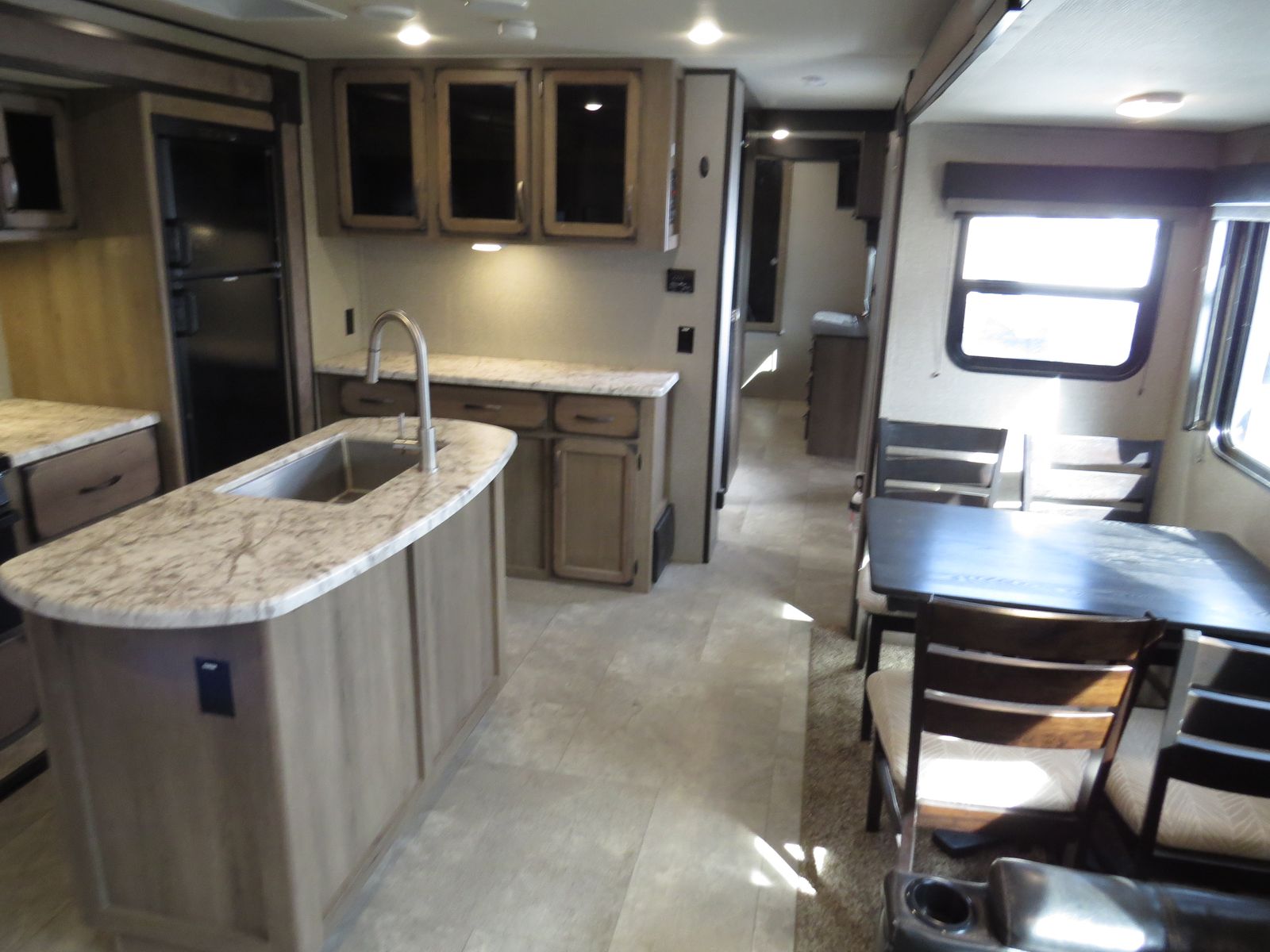 3 Slides, Front walk around queen bed Slide Out, Bathroom, Washer & Dryer Hook ups, Underbelly Cover, Side Kitchen & Entertainment Slide, Lots & Lots of Storage, Island counter space, Dinette & Theater Seats Slide, Couch makes down, (2) Electric patio awnings, A/C unit and Heat.