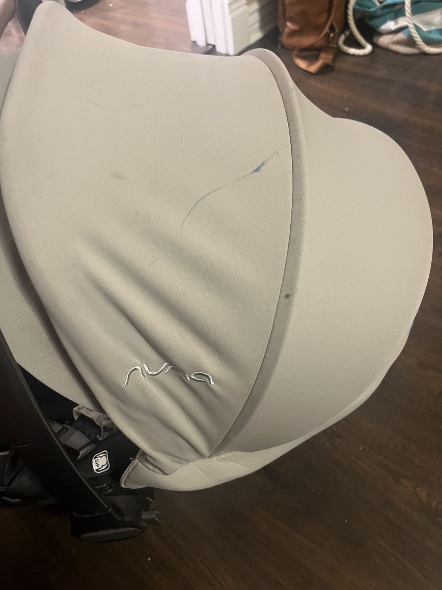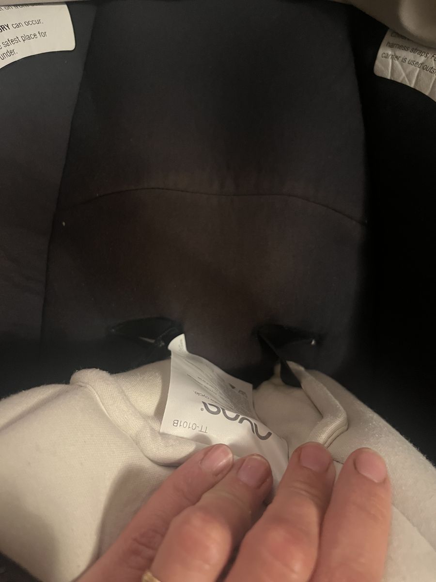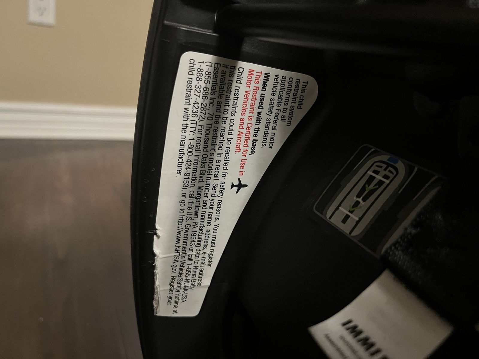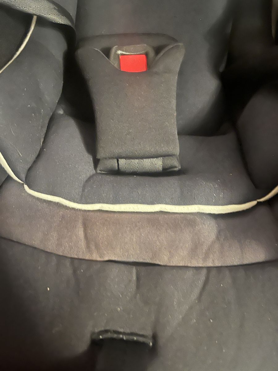 We got this carseat in 2022 and used it with two kids for the first year. Has infant inserts and custom seatbelt cover but I also have the original ones. It should be good to use till the end of 2028. We got a good use out of it and it's never been in an accident. All the parts are freshly washed, so the faded and discolored spots are probably permanent.