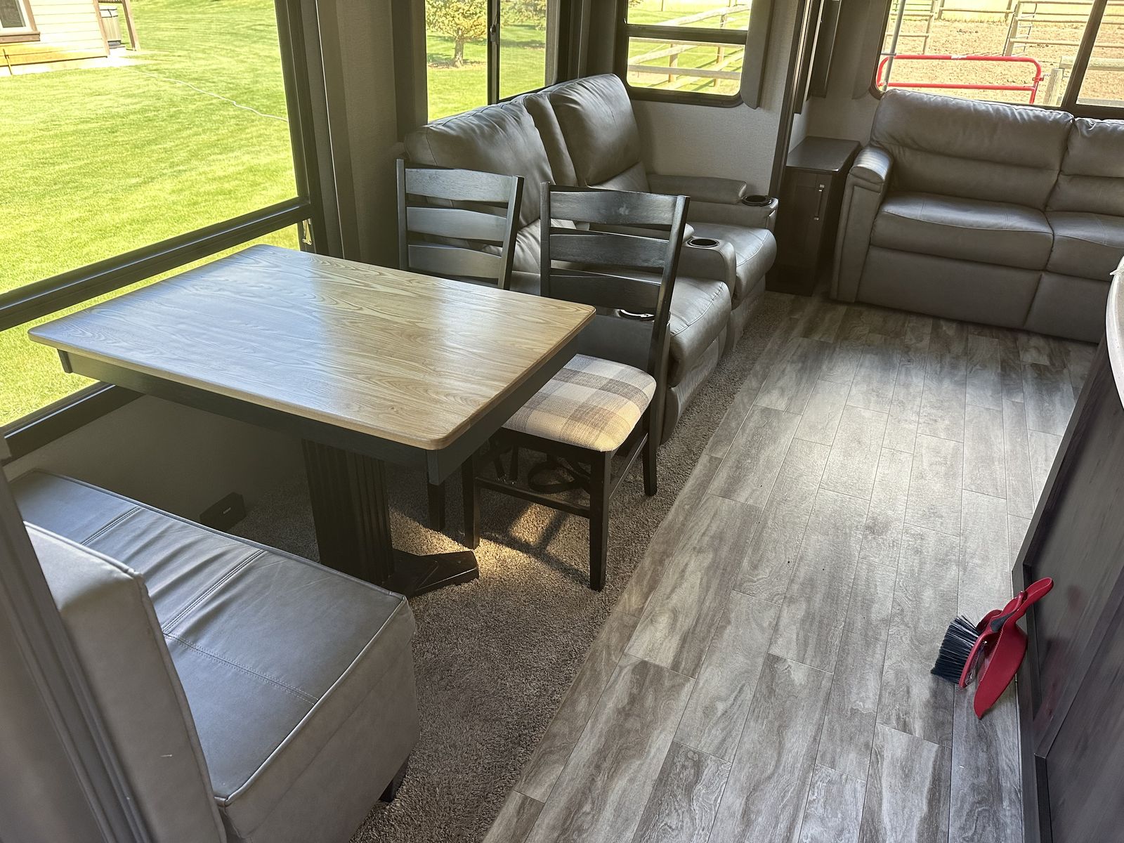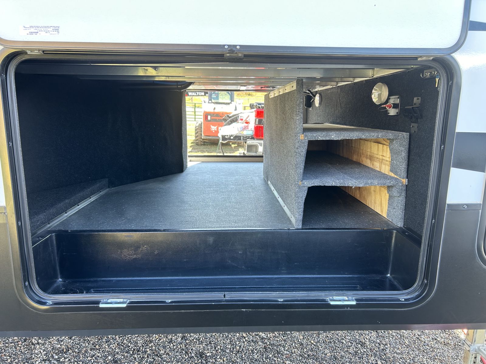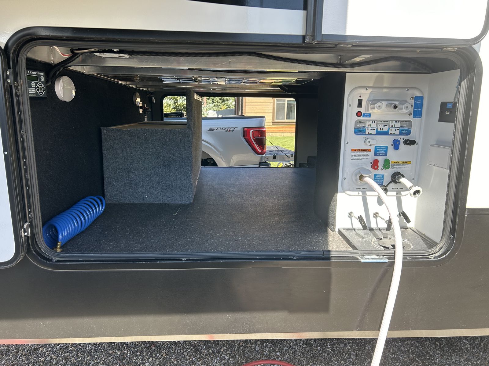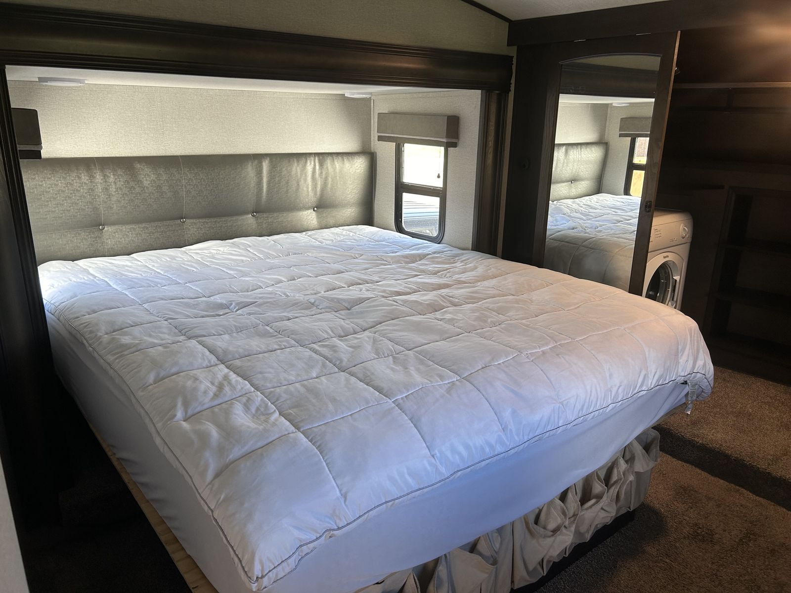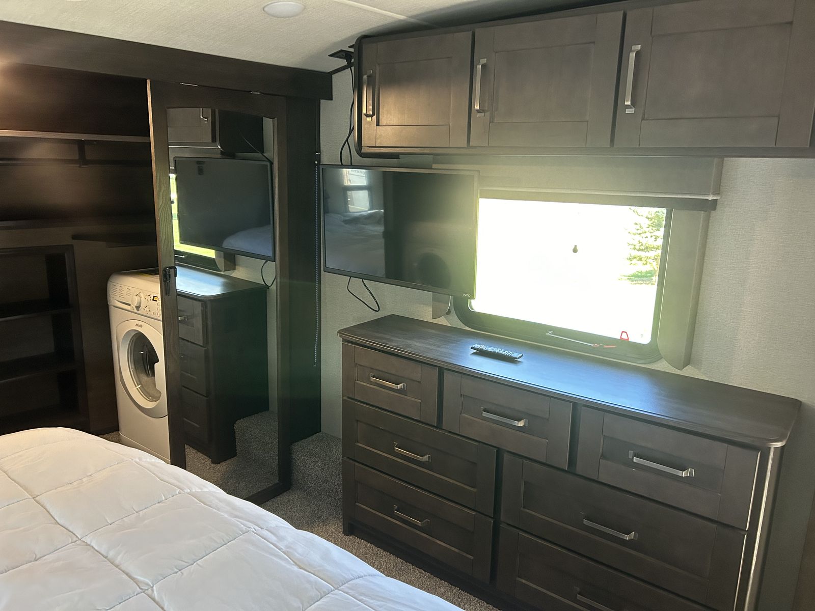 Special items are custom made trailer king size mattres, washer and dryer. Special Reese 5th Wheel goose neck hitch. Two smart TVs