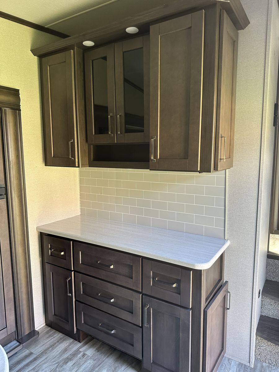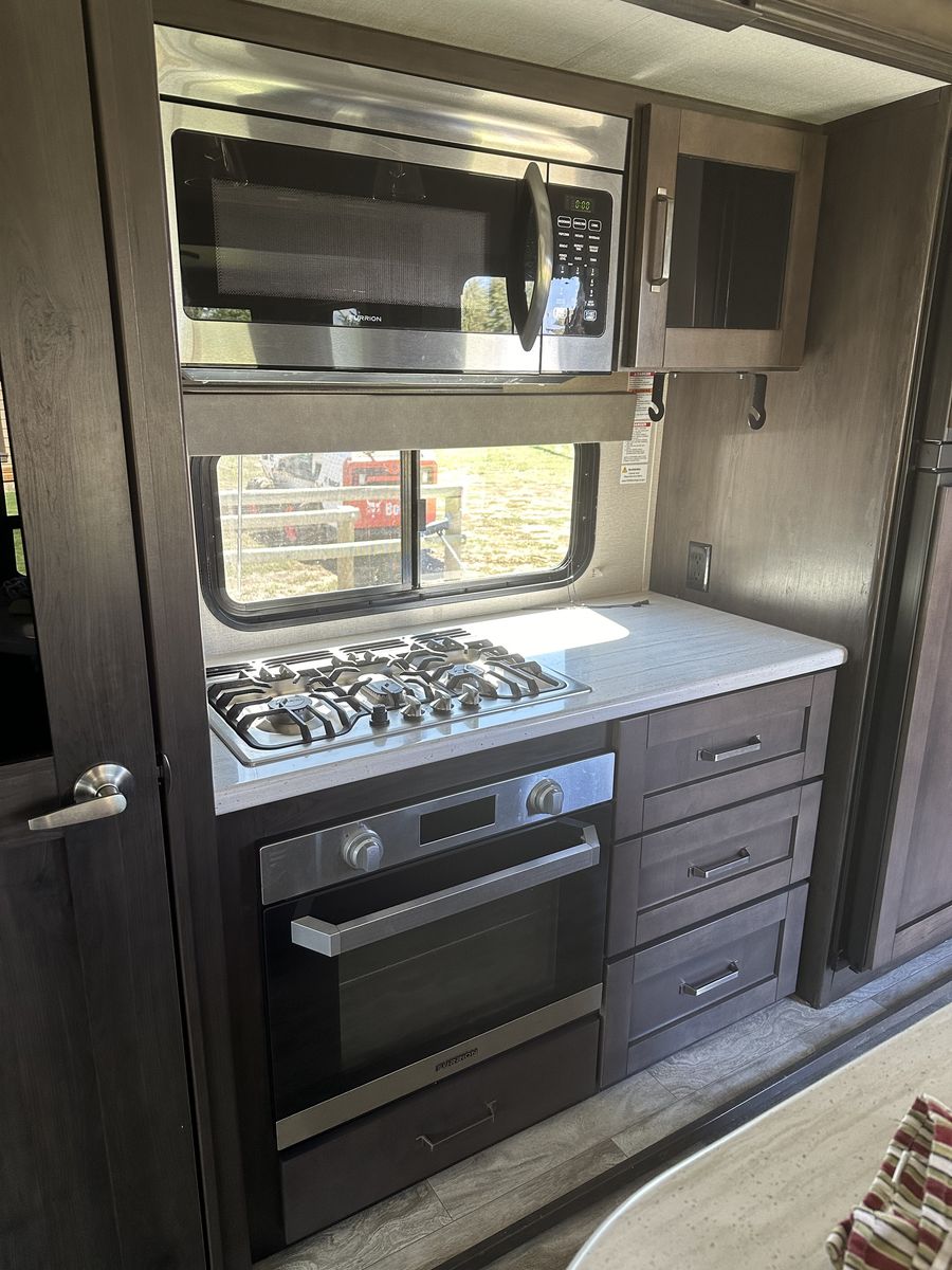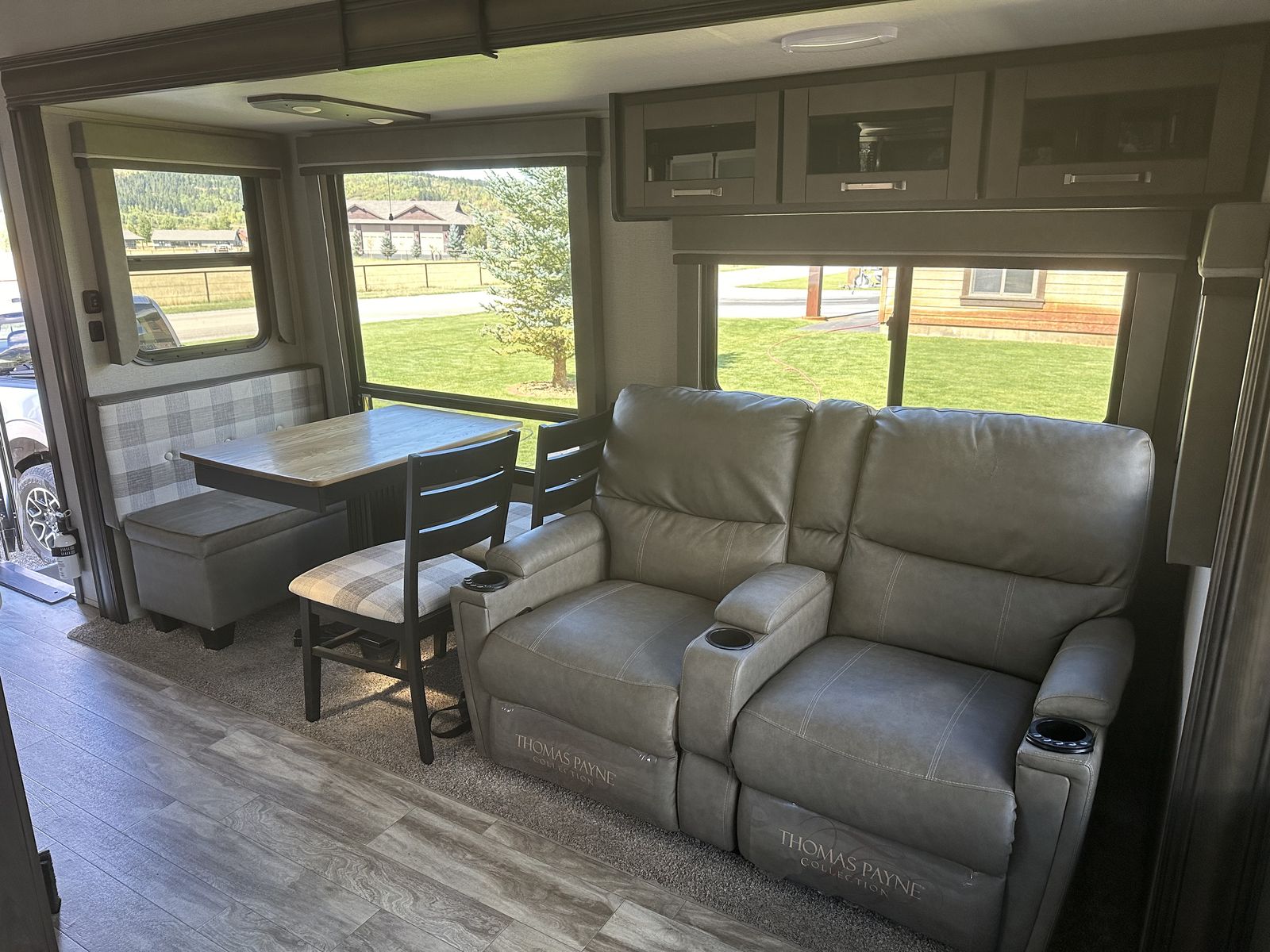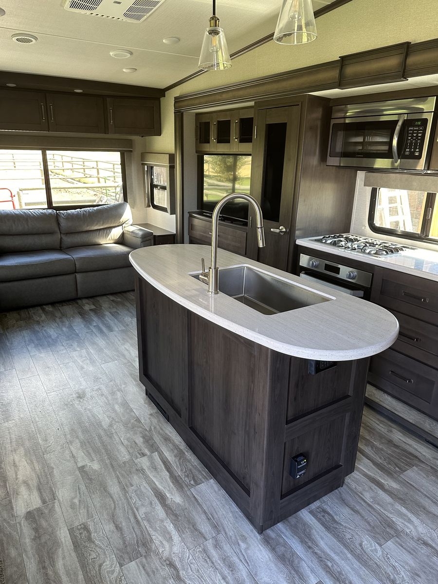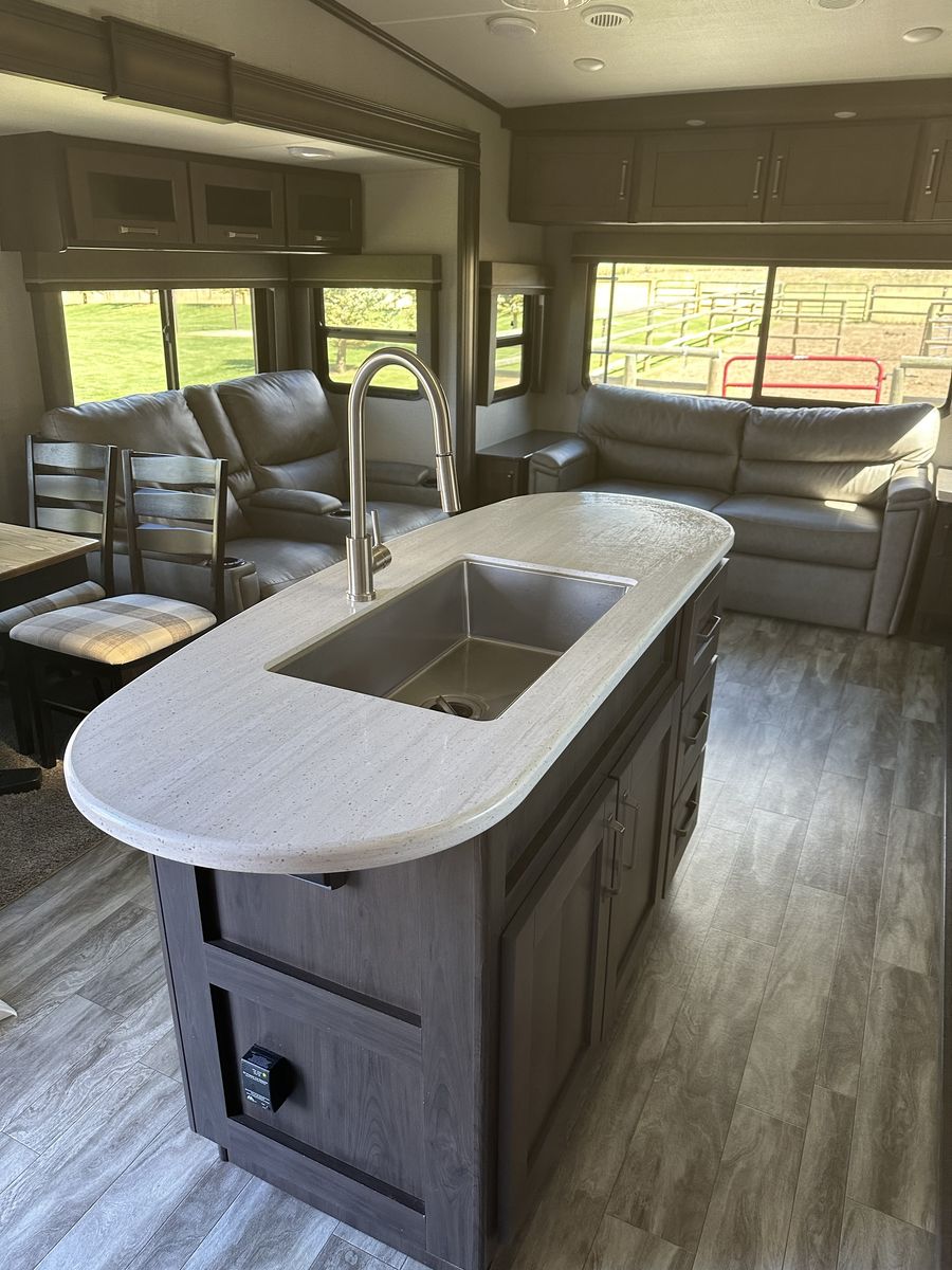 Special items are custom made trailer king size mattres, washer and dryer. Special Reese 5th Wheel goose neck hitch. Two smart TVs