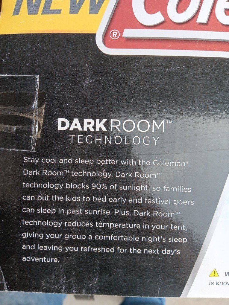 Coleman dark room tent six person blocks 90% of sunlight to keep their tent cooler in the summer