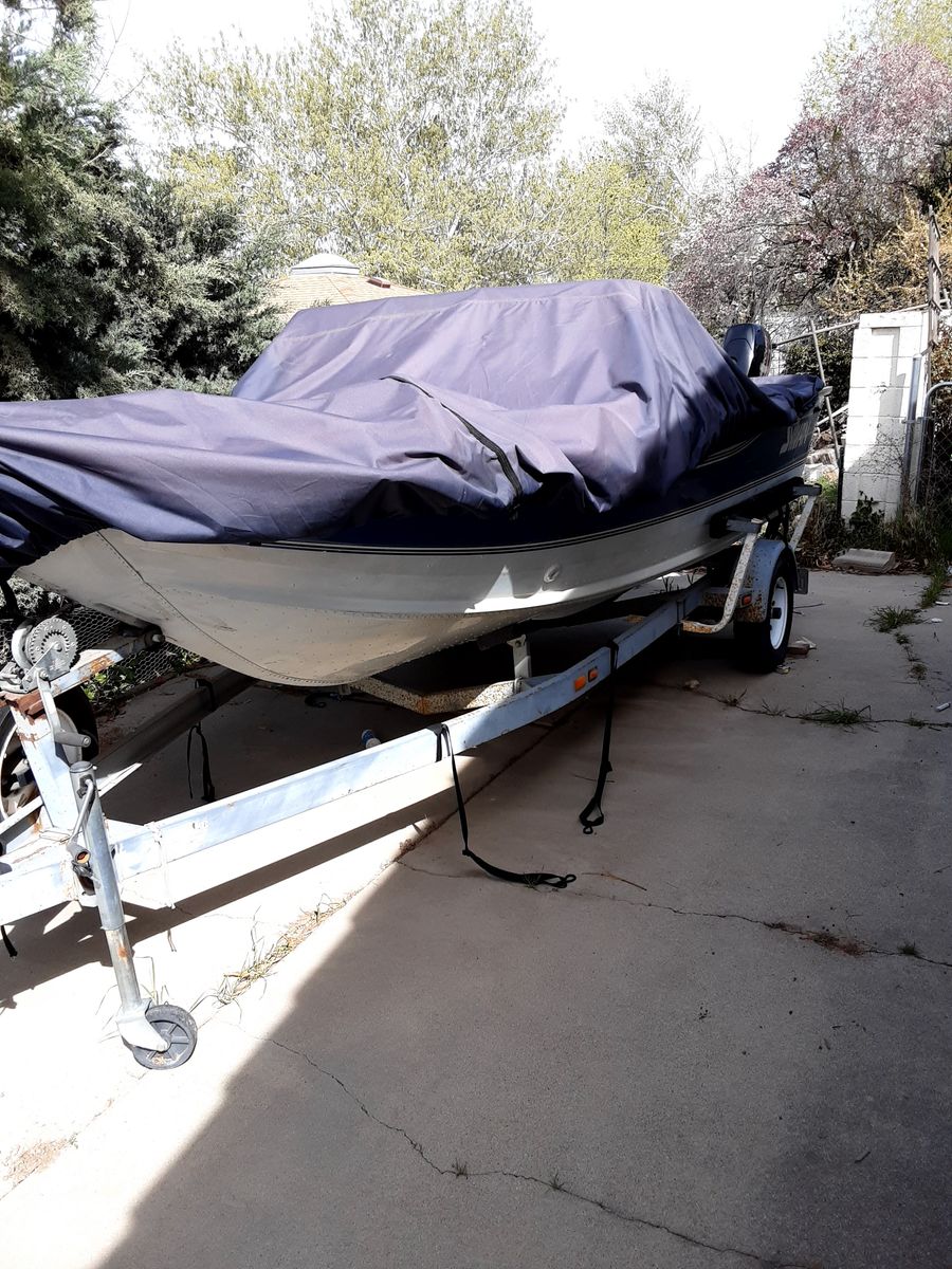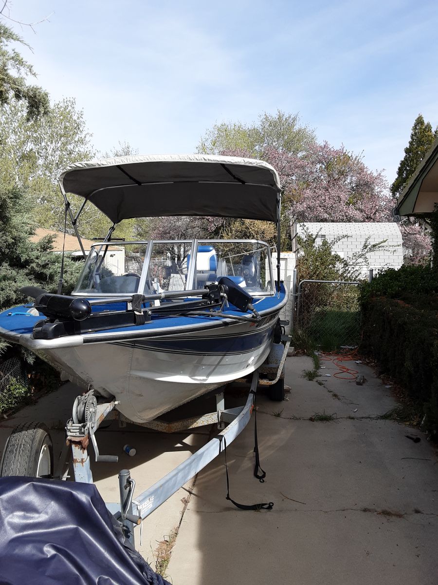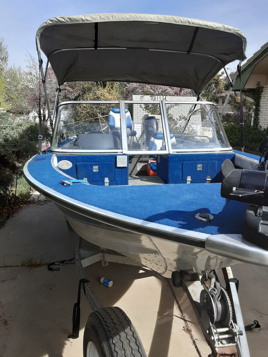 16 ft with 40 hp Force and Murcury 4 stoke trlling motor Electric motor in the front. It is good shape for its age new seats a couple of years ago.