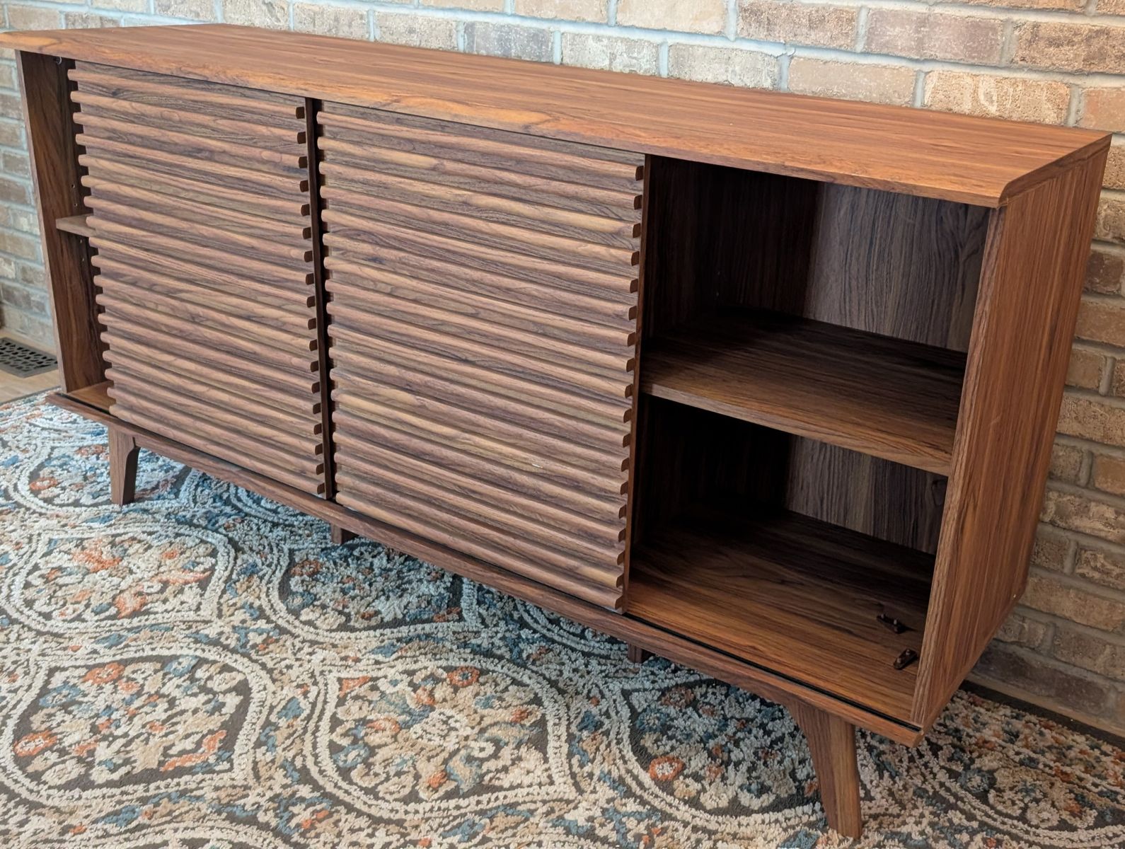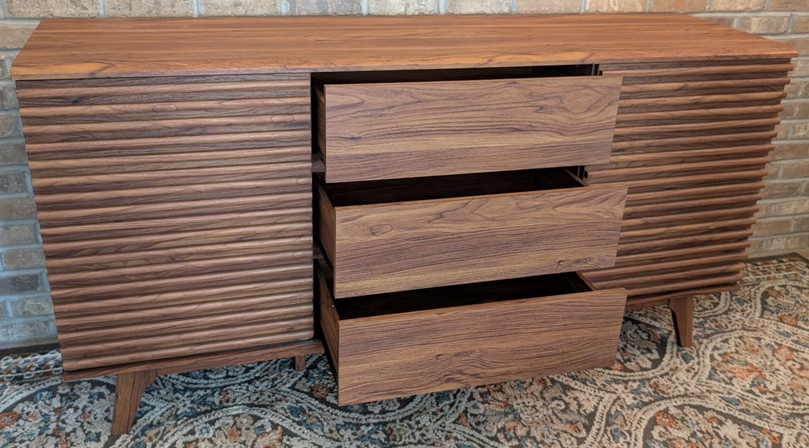 VenmoBrown cabinet. 3 drawer, sliding doors. 17 1/2" deep x 63" wide x 32 1/2" high
