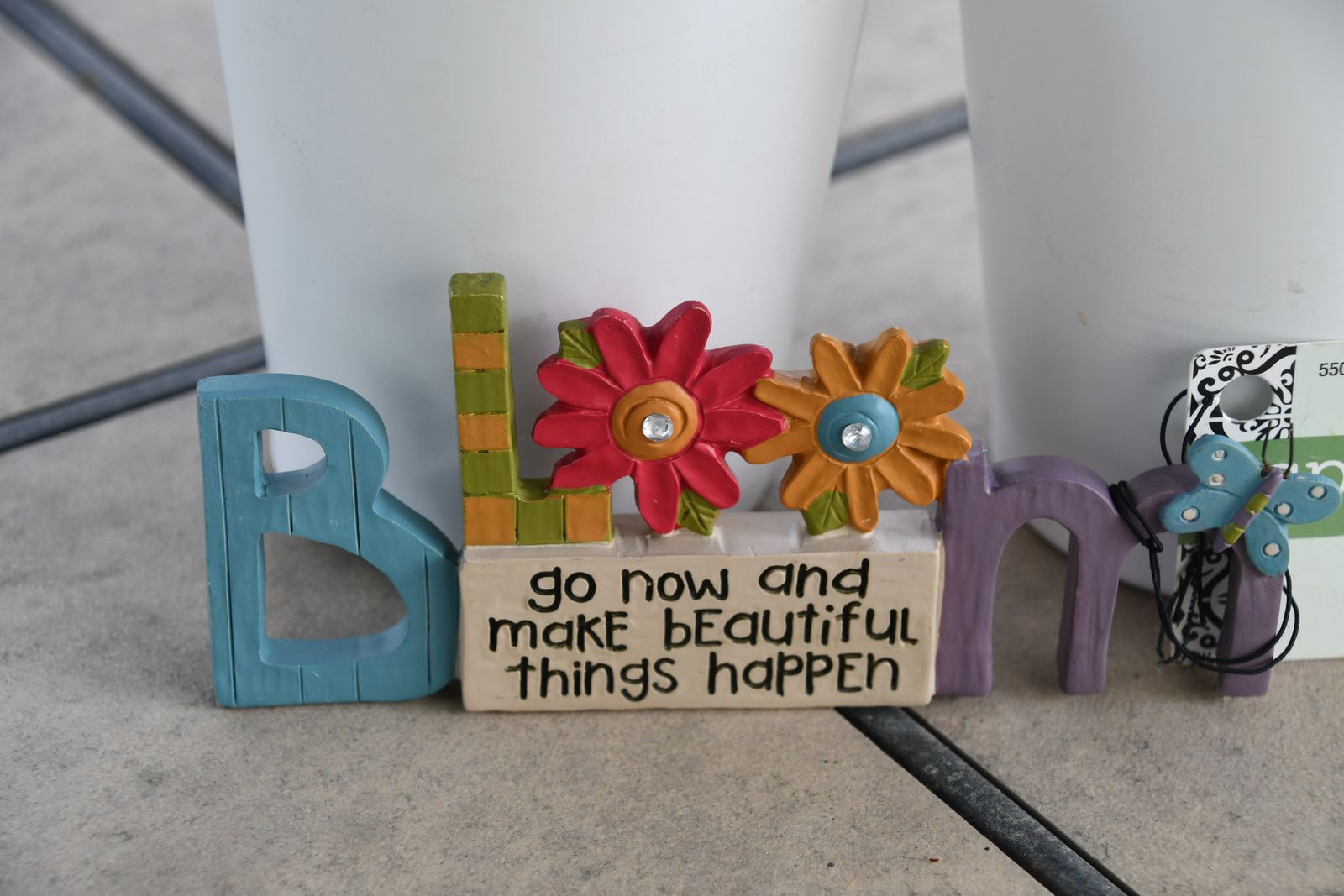 This Set of 3 FLOWER POTS & a "BLOOM" Sign is from a smoke free home. The White pots are MADE IN GERMANY and have LINERS. The diameter of the pots are about 4". There are NO CHIPS. Questions??? Please ask. We are located in Plain City. Cash only please.