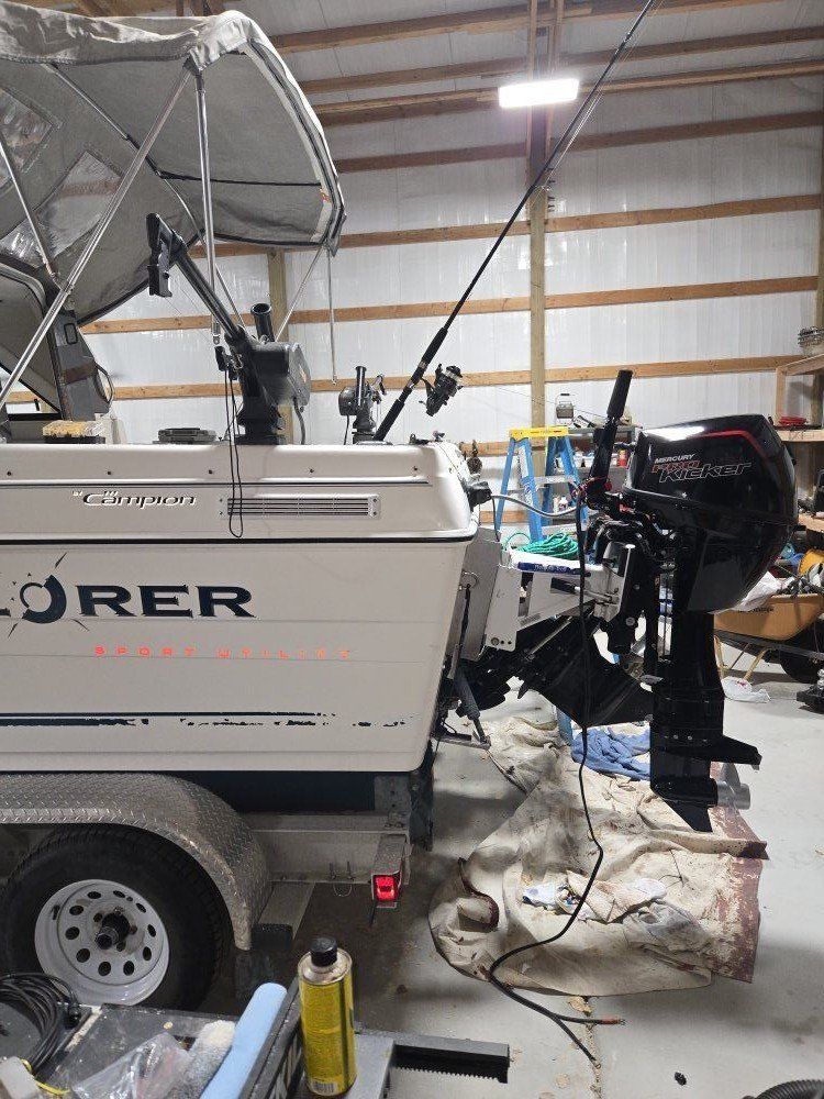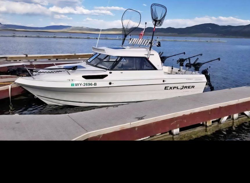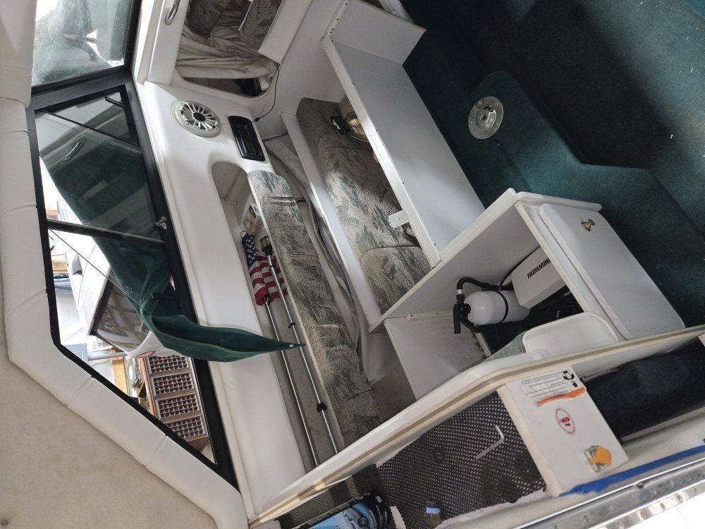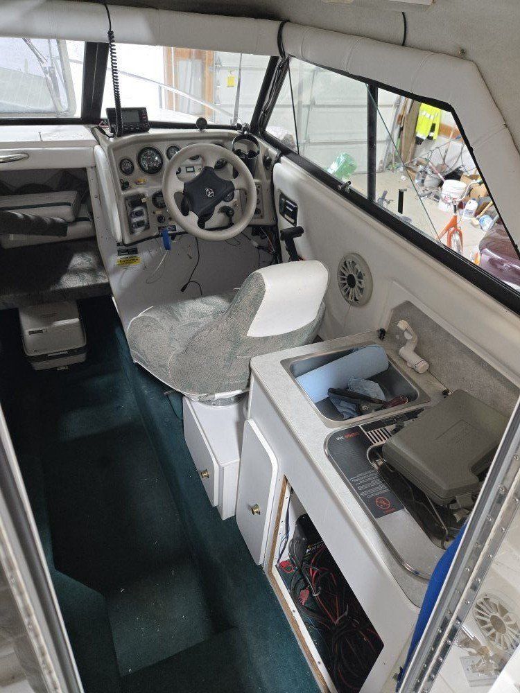 2000 22 foot cabin cruiser. Aluminum boat wheels trailer , just replaced all new wheel bearings brand new 9.9 merc troller hydraulic tilt electric start remote troll . 4. 3 merc alfa one . Just serviced. two mag 10 cannon electrics. cushions are emerald green more pictures if interested. health is failing