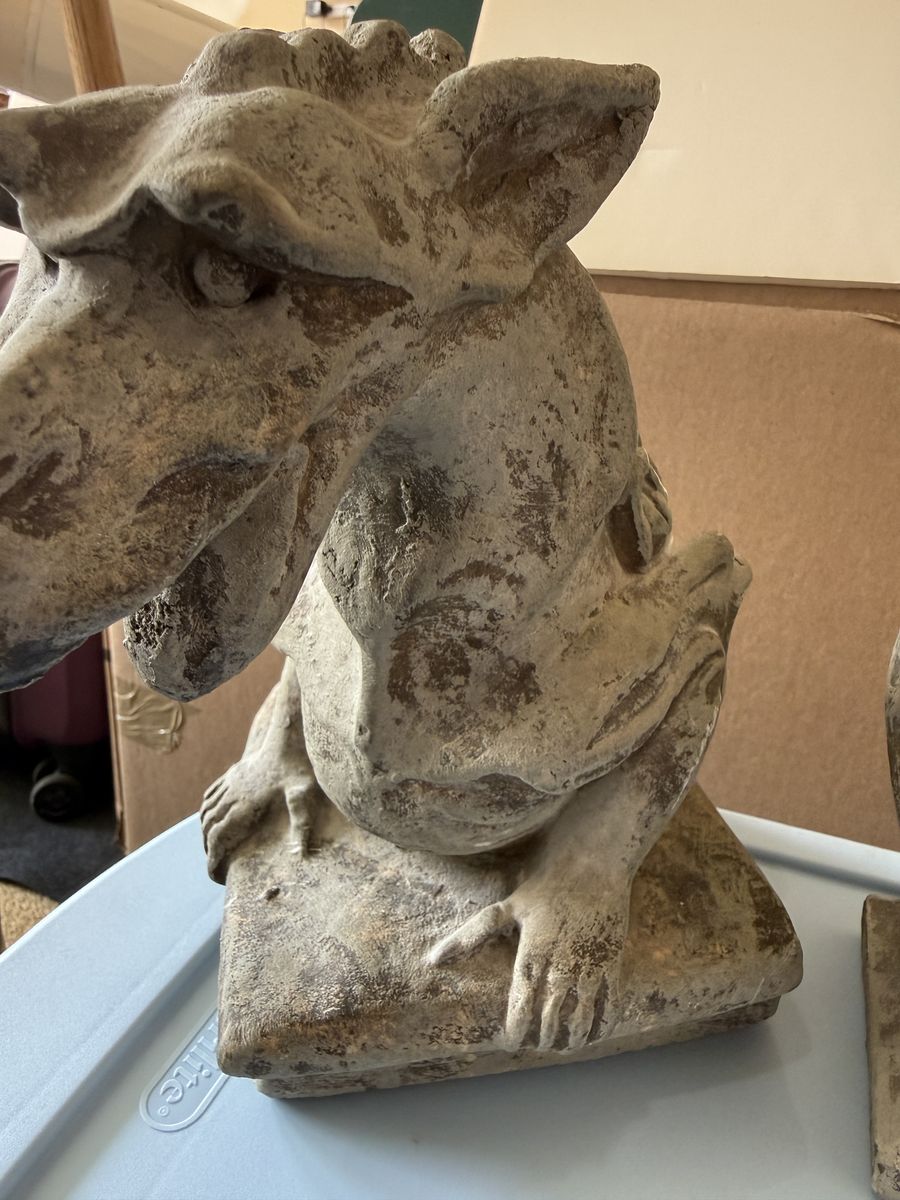 VenmoUnique gargoyle statues in good condition. One is a “Bookworm” gargoyle reading a book, the other is a classic Notre Dame style piece.